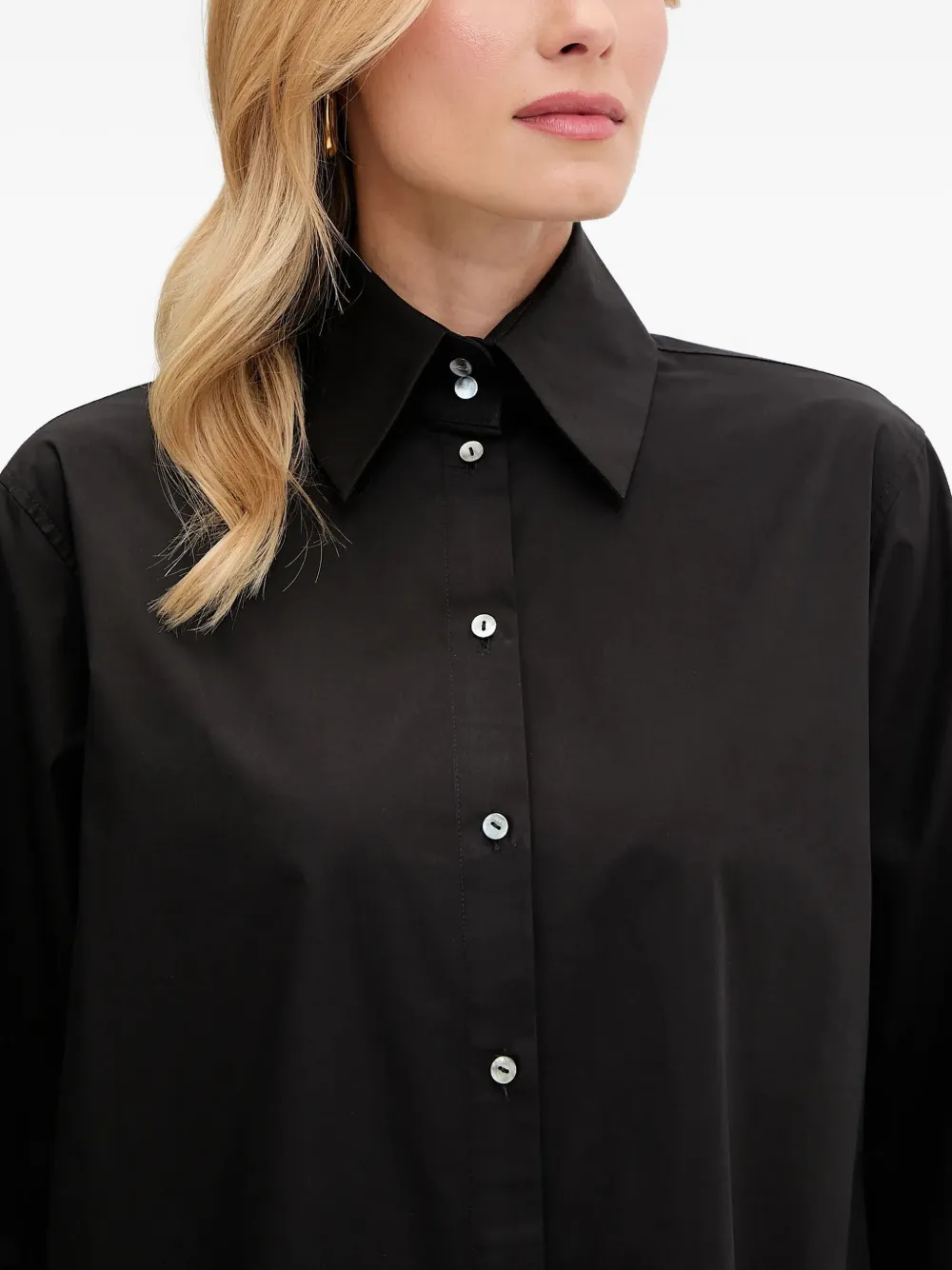 Черные длинные рукава, застежка на пуговицы, вышитые манжеты