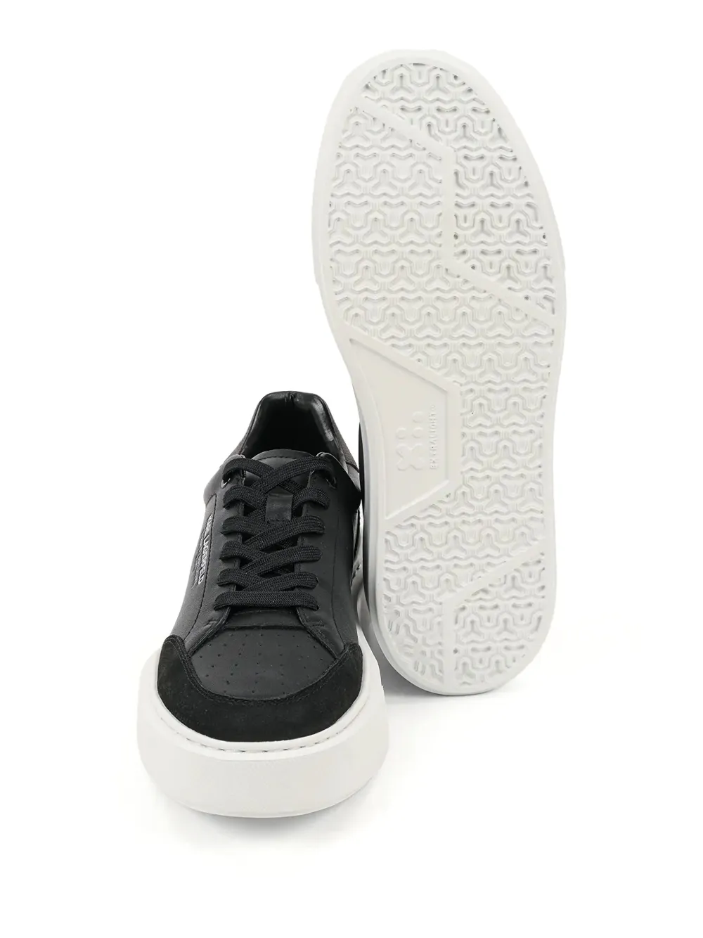 Черная кожа, замшевая вставка на каблуке, платформа, шнуровка, надпись логотипа