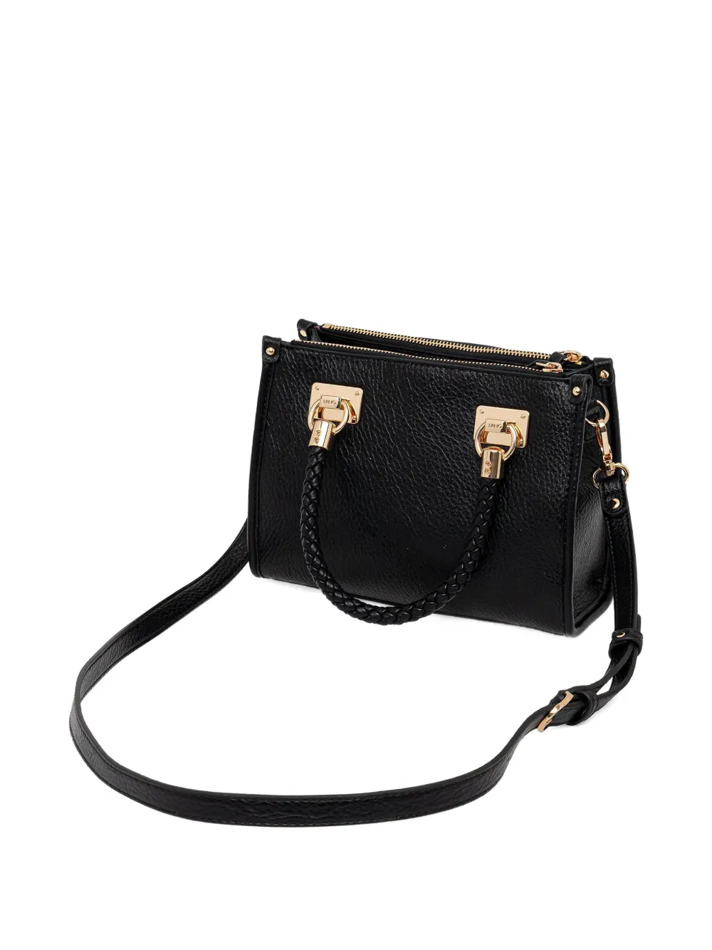 Черная кожаная плетеная ручка, золотистая фурнитура, застежка-молния, съемный плечевой ремень