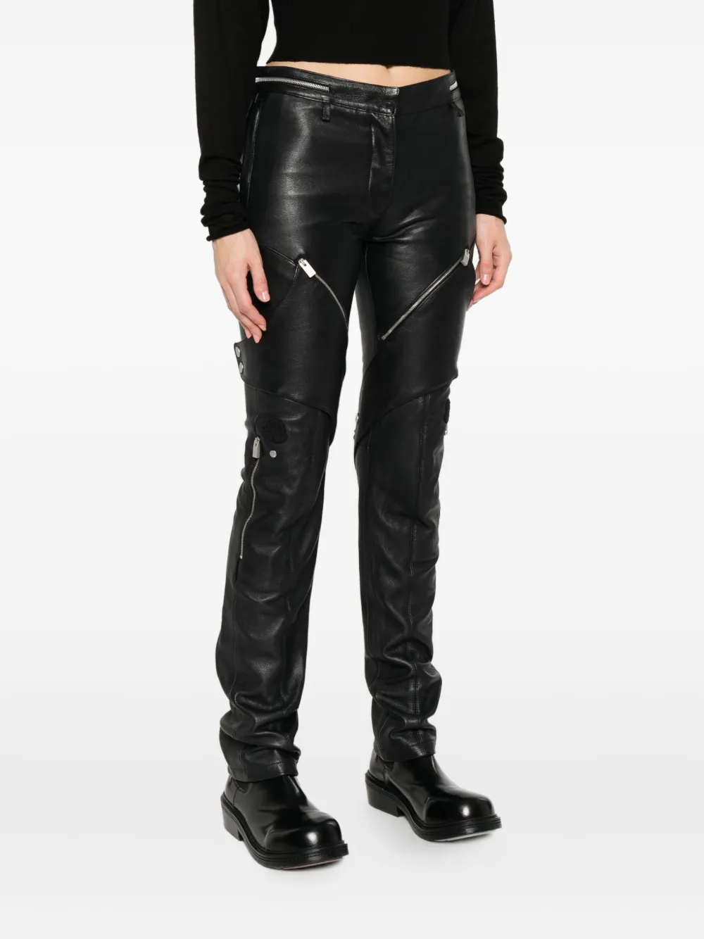Кожаные брюки с карманами на молнии MONCLER, черный