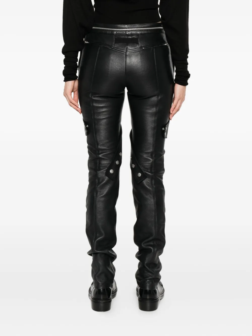 Кожаные брюки с карманами на молнии MONCLER, черный 222 082₽