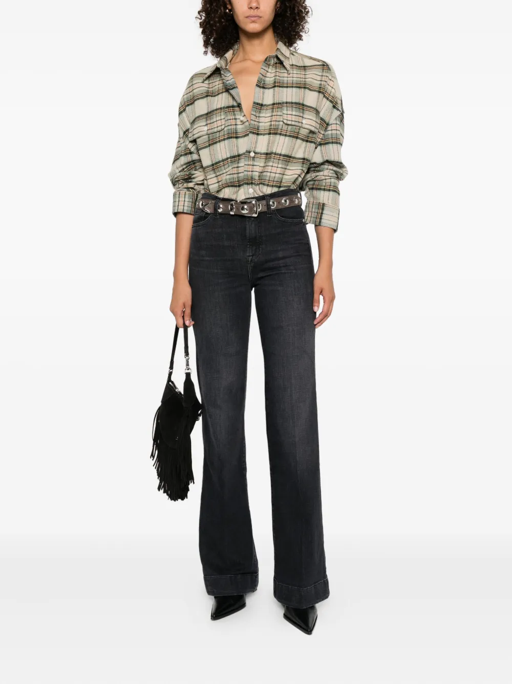Черные расклешенные шлевки для ремня, пять карманов