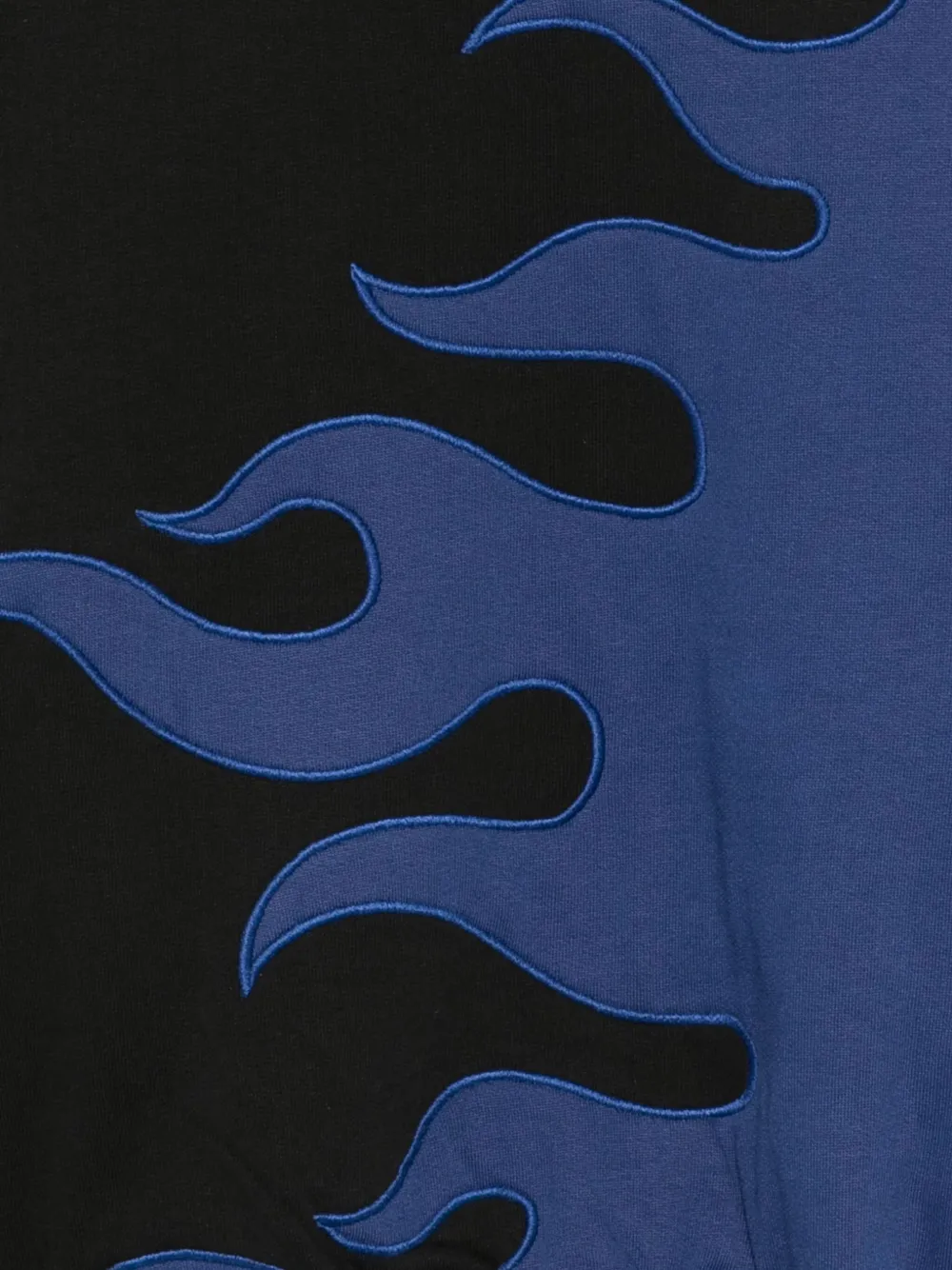 Хлопчатобумажная ткань с вышивкой черного и синего пламени, круглый вырез горловины, длинные рукава