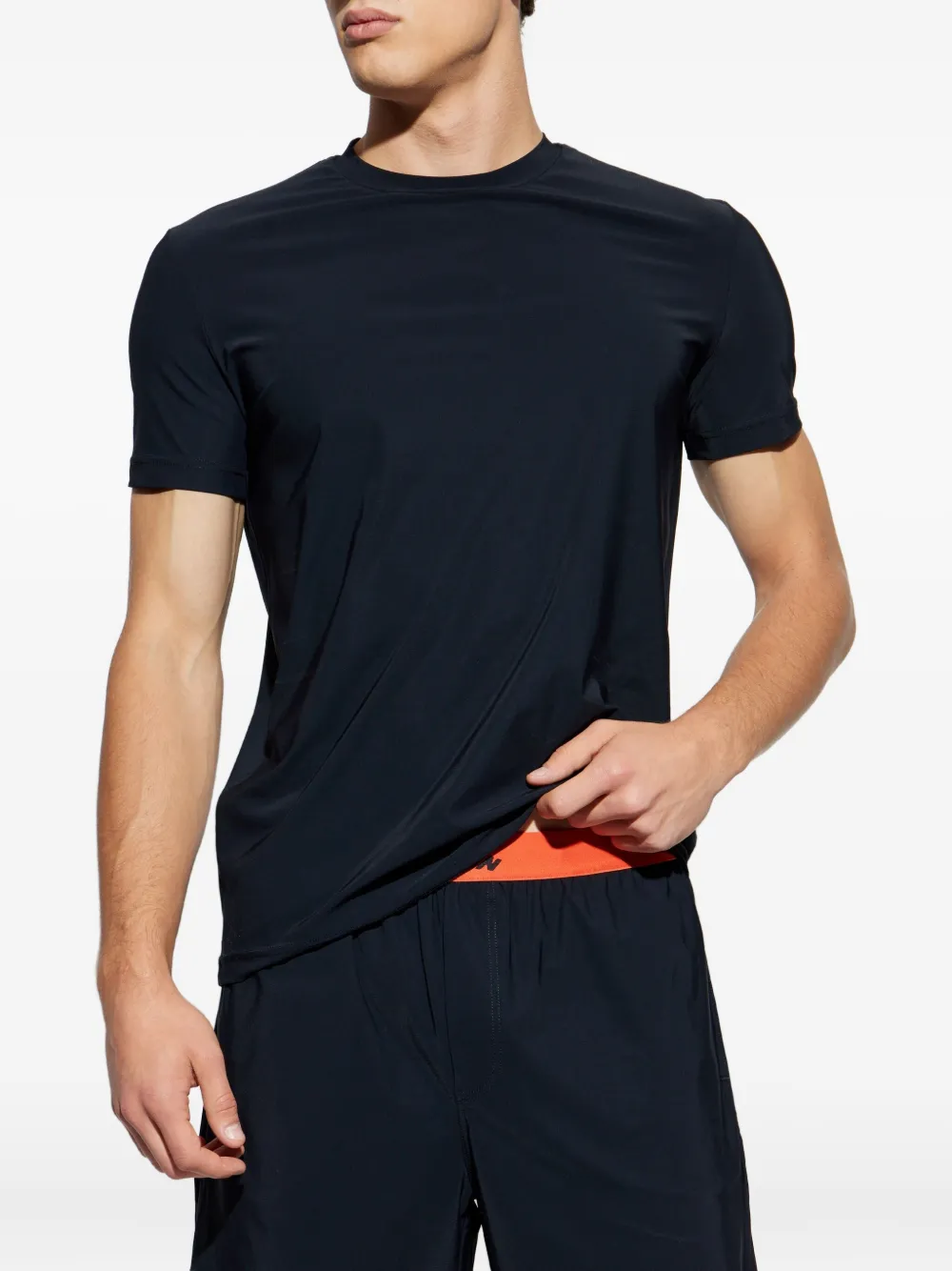 Черный с короткими рукавами и круглым вырезом. Иконка с принтом.