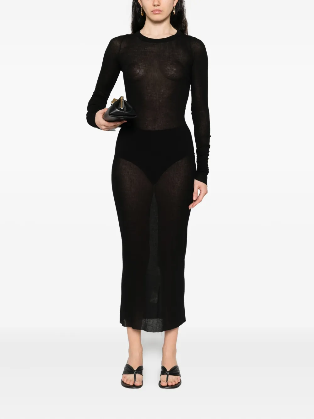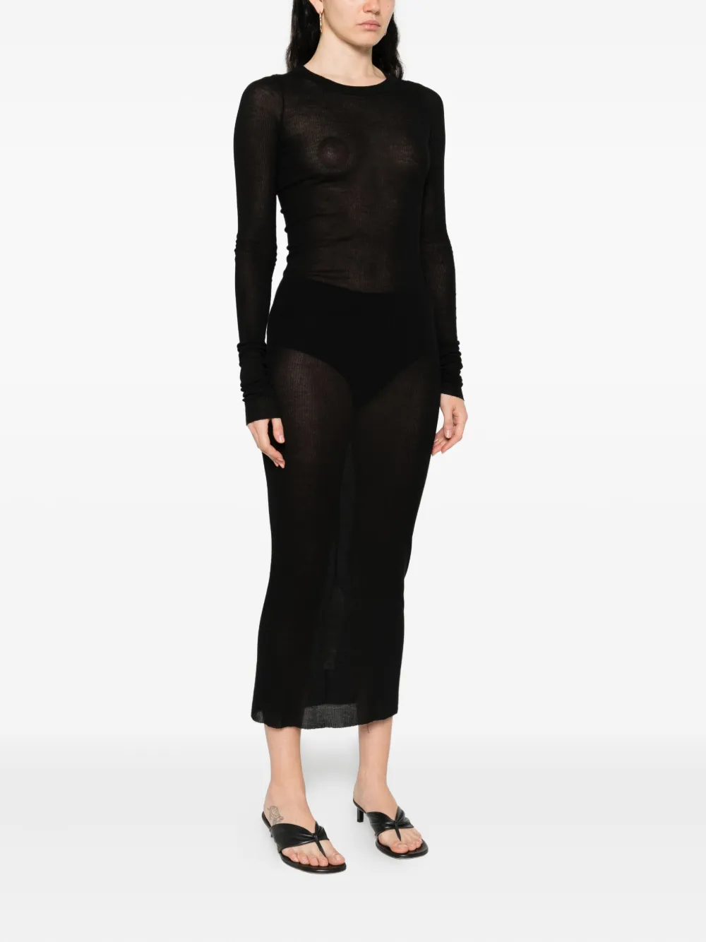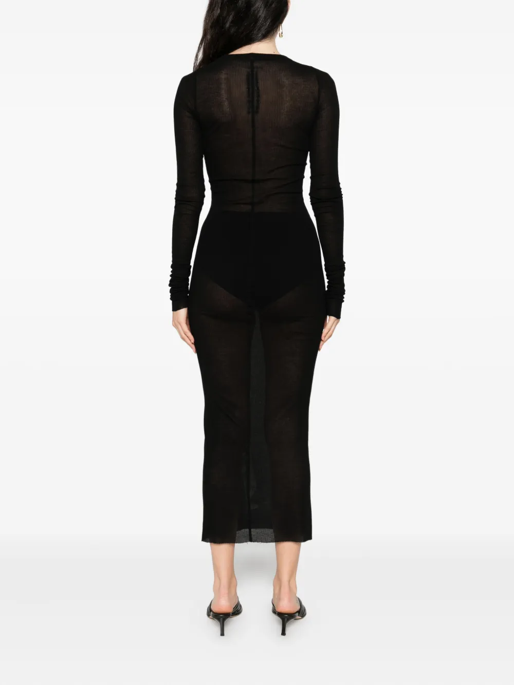 Платье миди с длинными рукавами в рубчик Rick Owens, черный