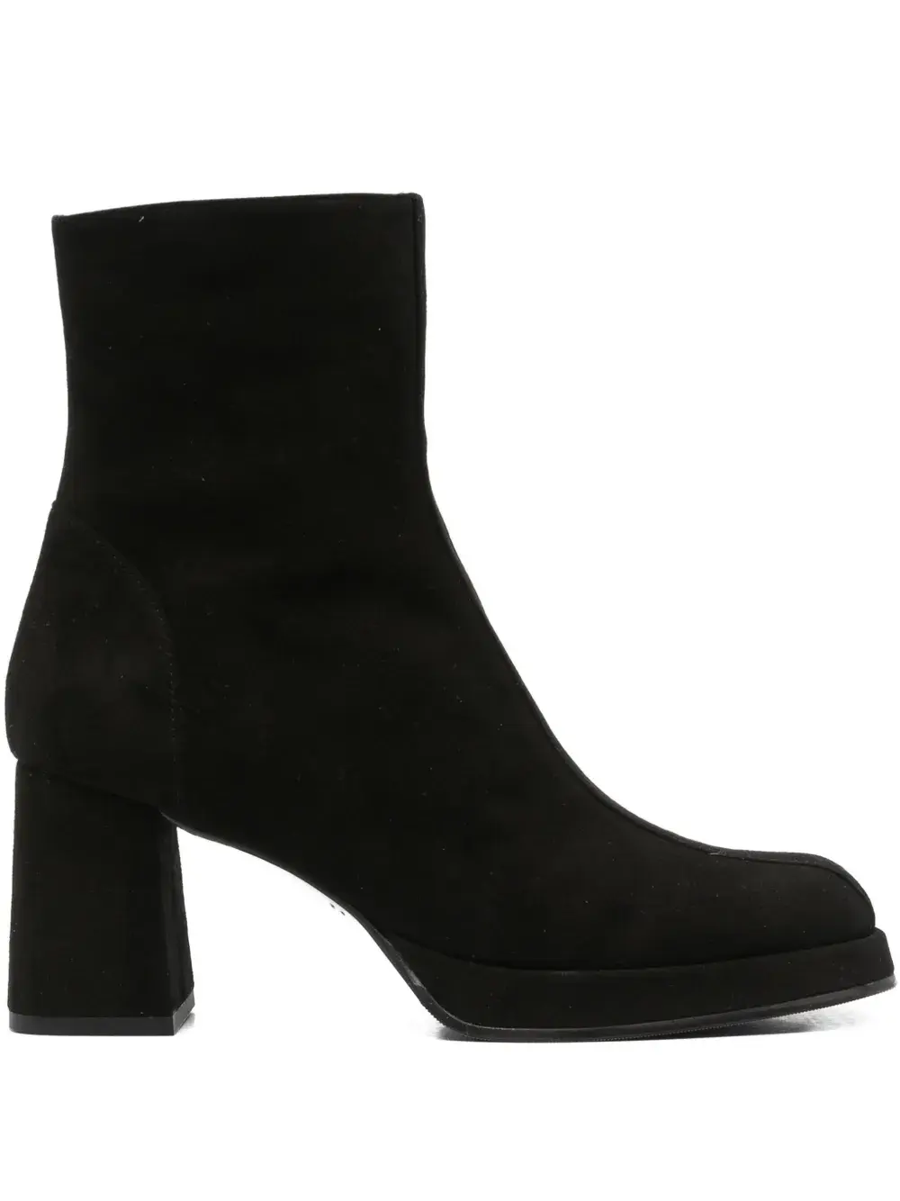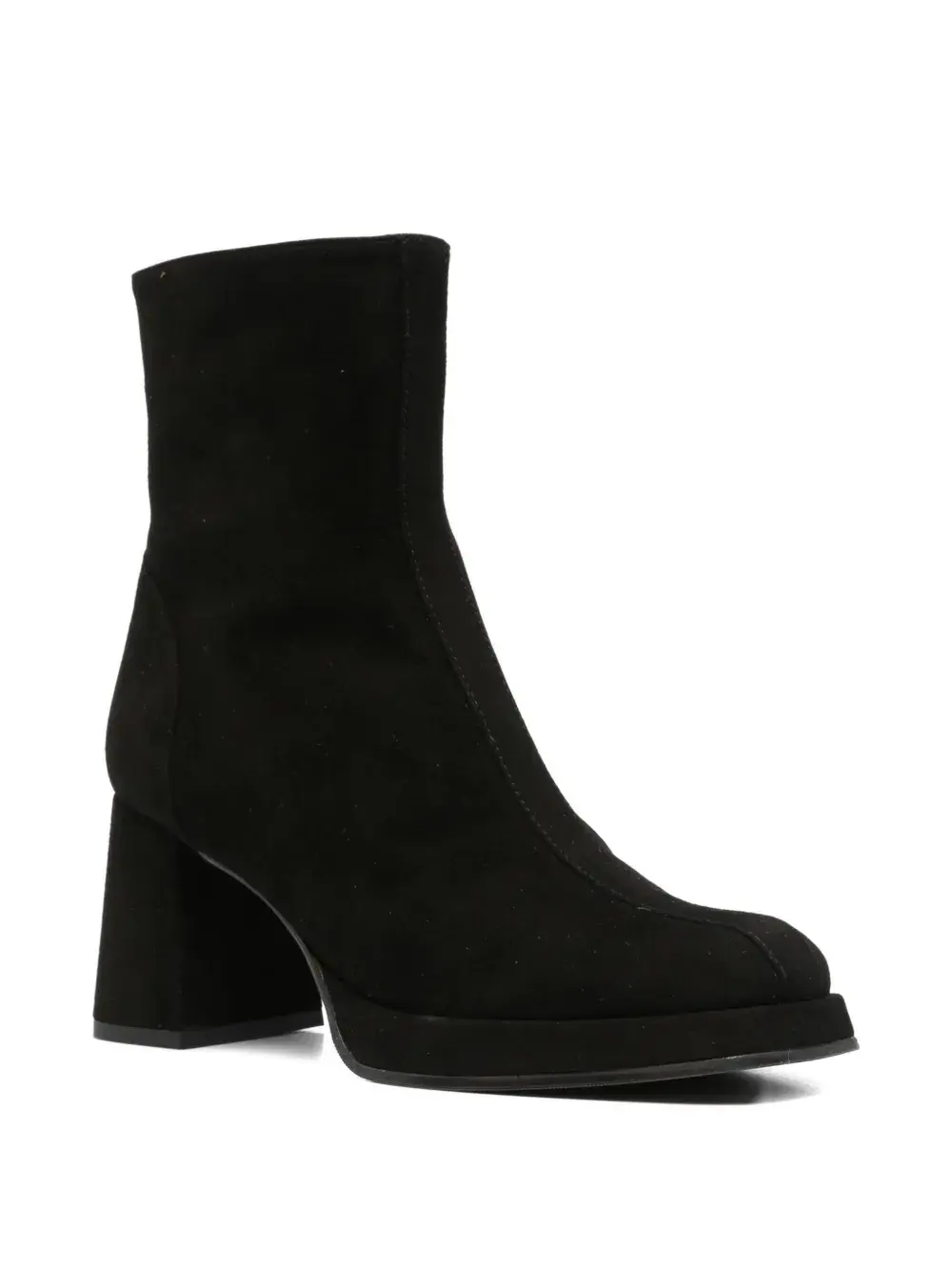 Черная замшевая текстура, квадратный носок, застежка-молния, блочный каблук, высота до щиколотки