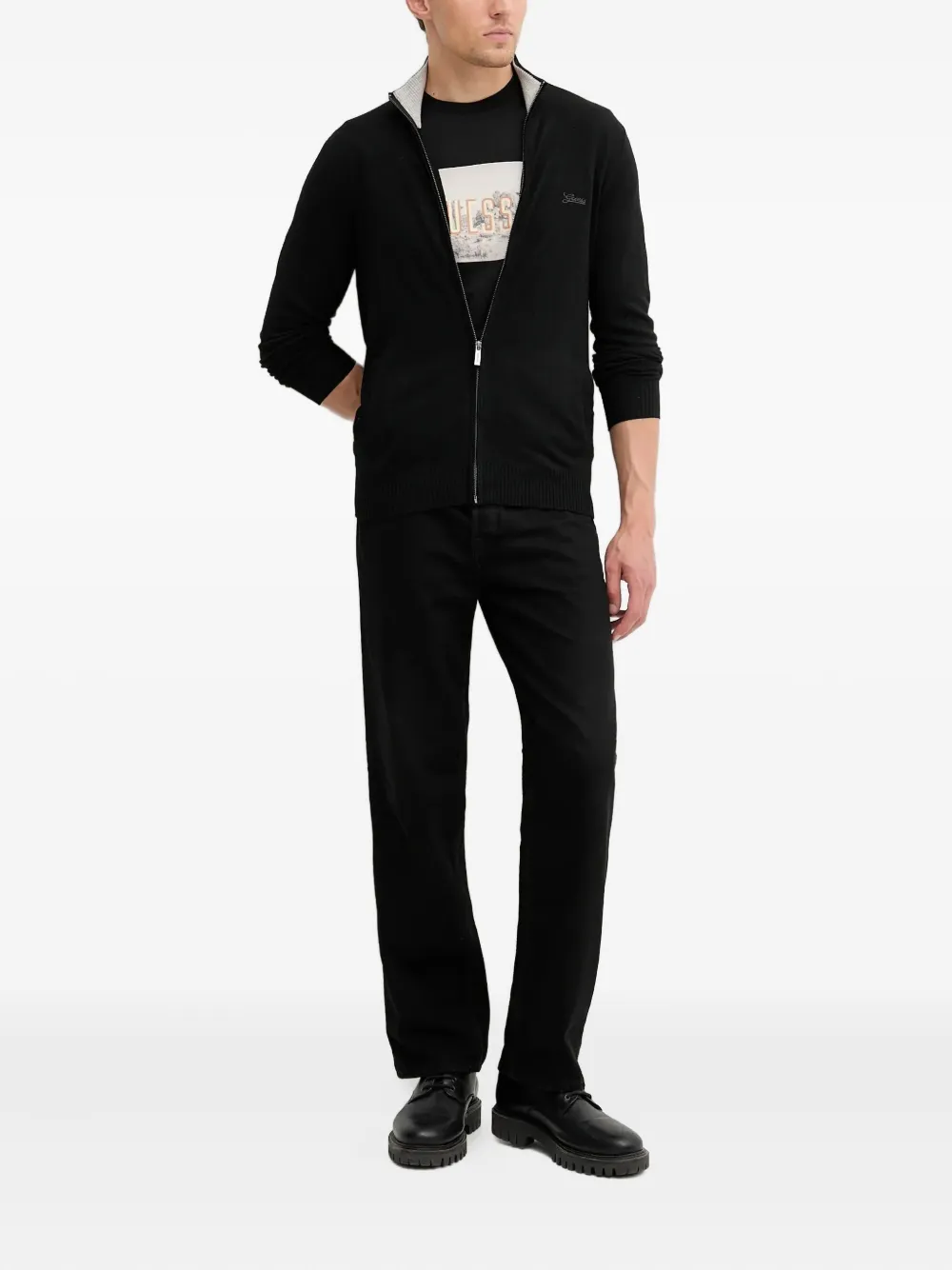 Свитер с логотипом на молнии GUESS USA, черный
