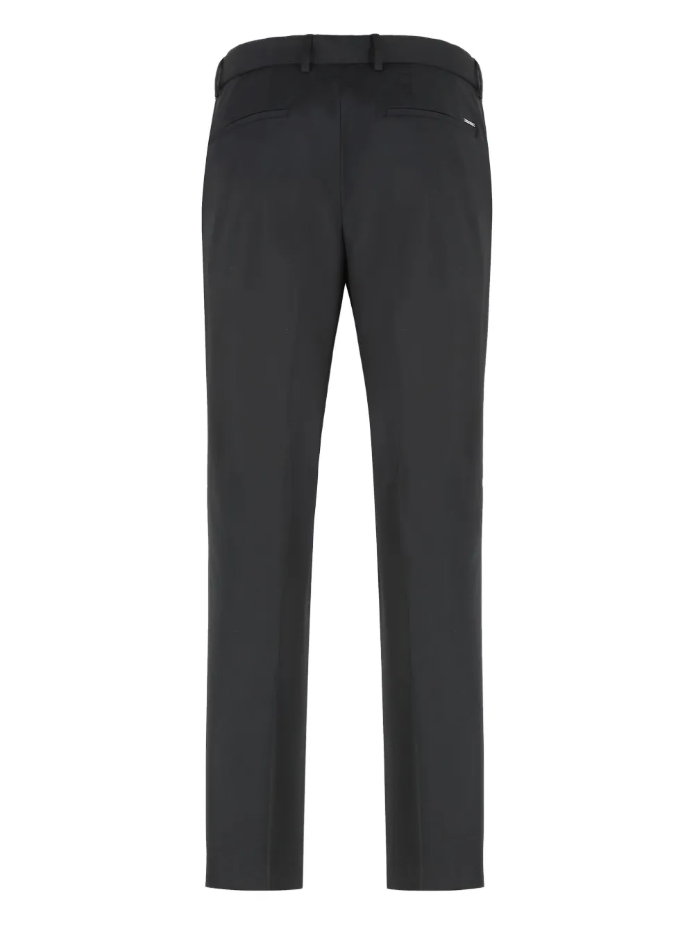 Черный, два боковых кармана, два прорезных кармана сзади, приталенный крой