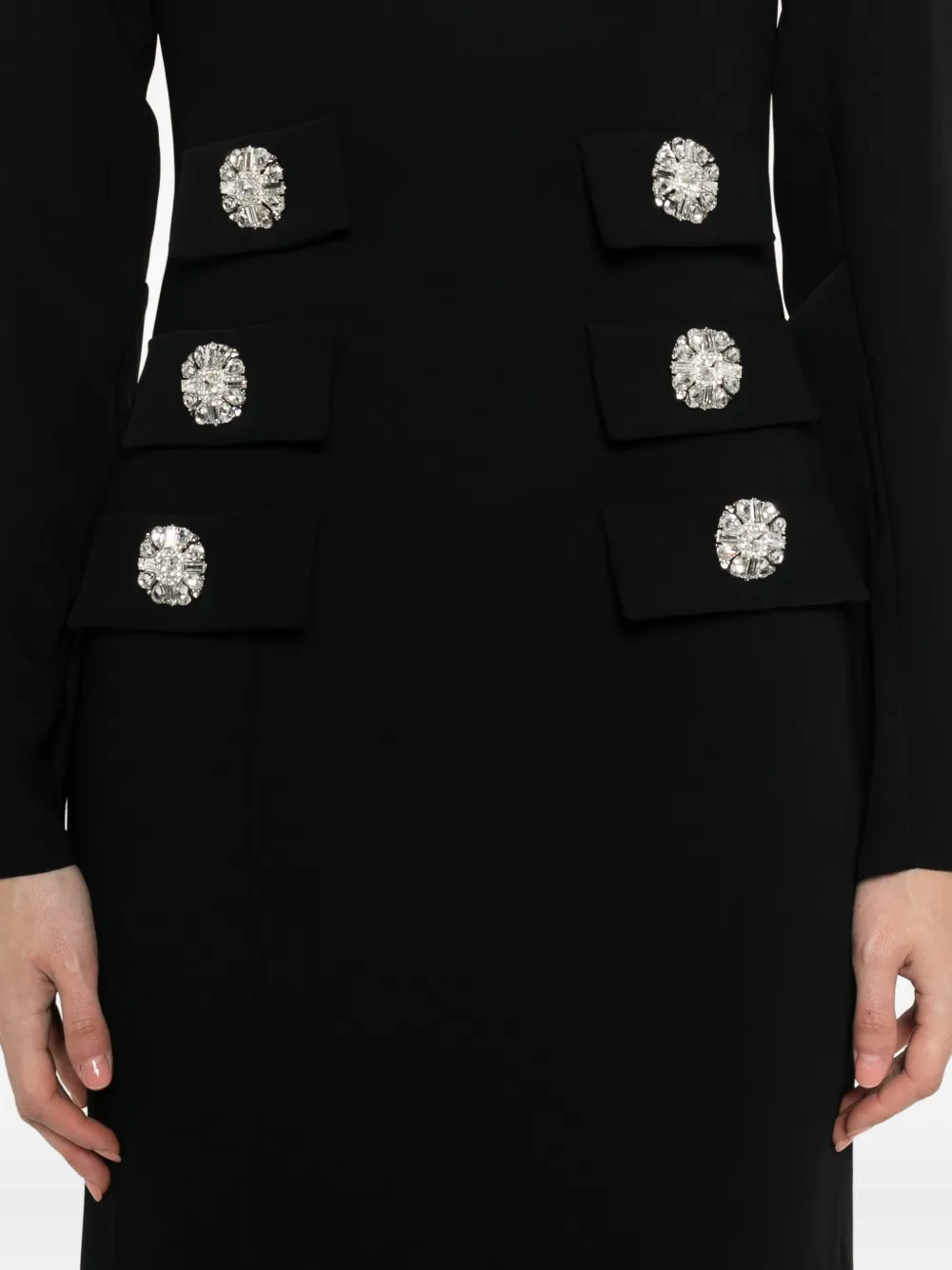 Черные пуговицы, украшенные драгоценными камнями, длинные рукава, V-образный вырез