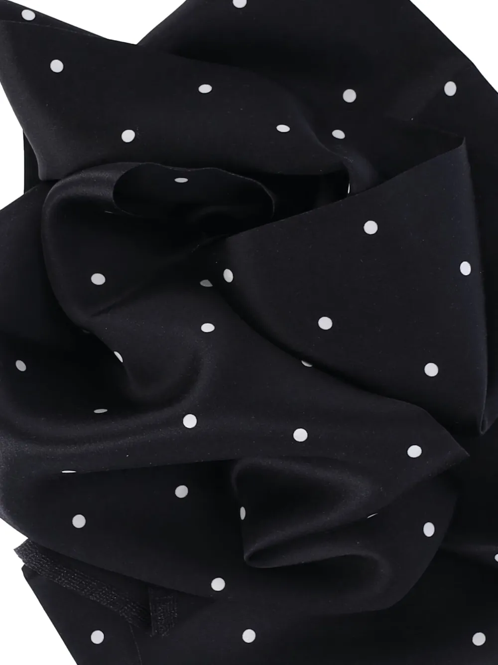 Черный узор в горошек, атласная текстура, бахрома по краям, прямоугольная форма, шелковый материал