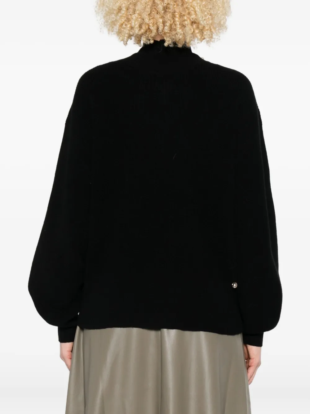 Черный, с высоким воротом, ребристой вязкой, жемчужными украшениями, длинными рукавами, свободным кроем