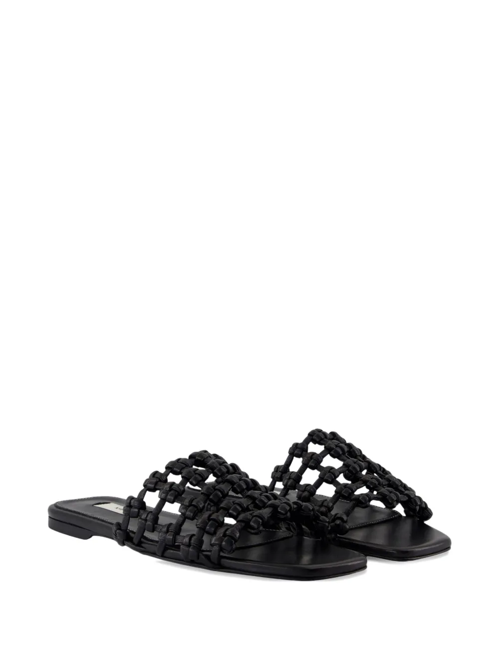 Черные кожаные плетеные туфли с открытым квадратным носком, плоская подошва