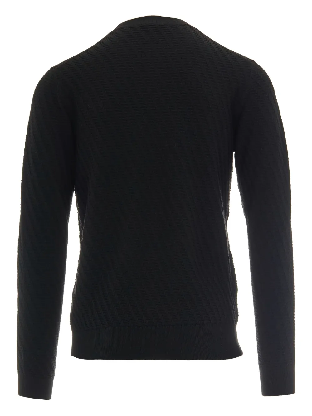 Черная текстурированная вязка, длинные рукава, круглый вырез, прямой подол, шерсть