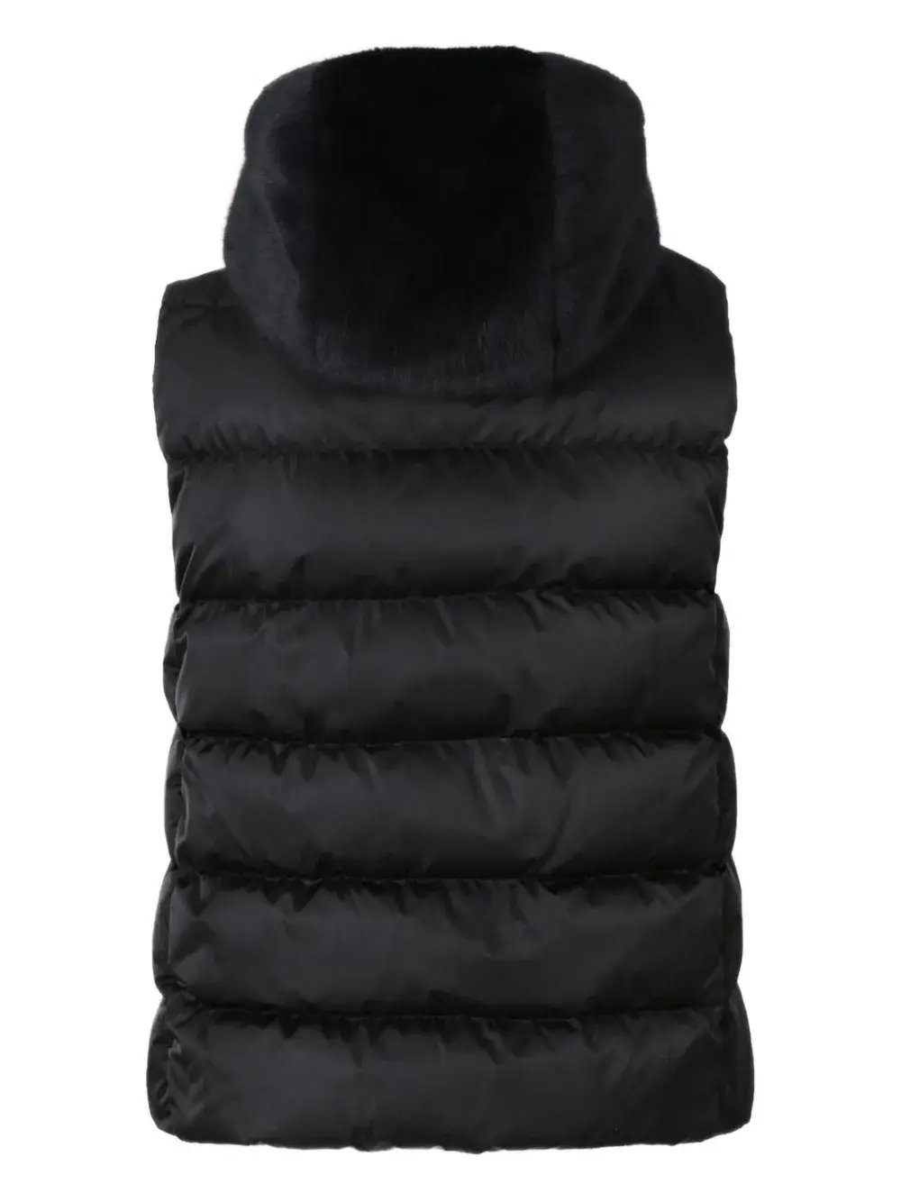 Черный стеганый дизайн, высокий ворот, без рукавов, подкладка из искусственного меха, застежка-молния