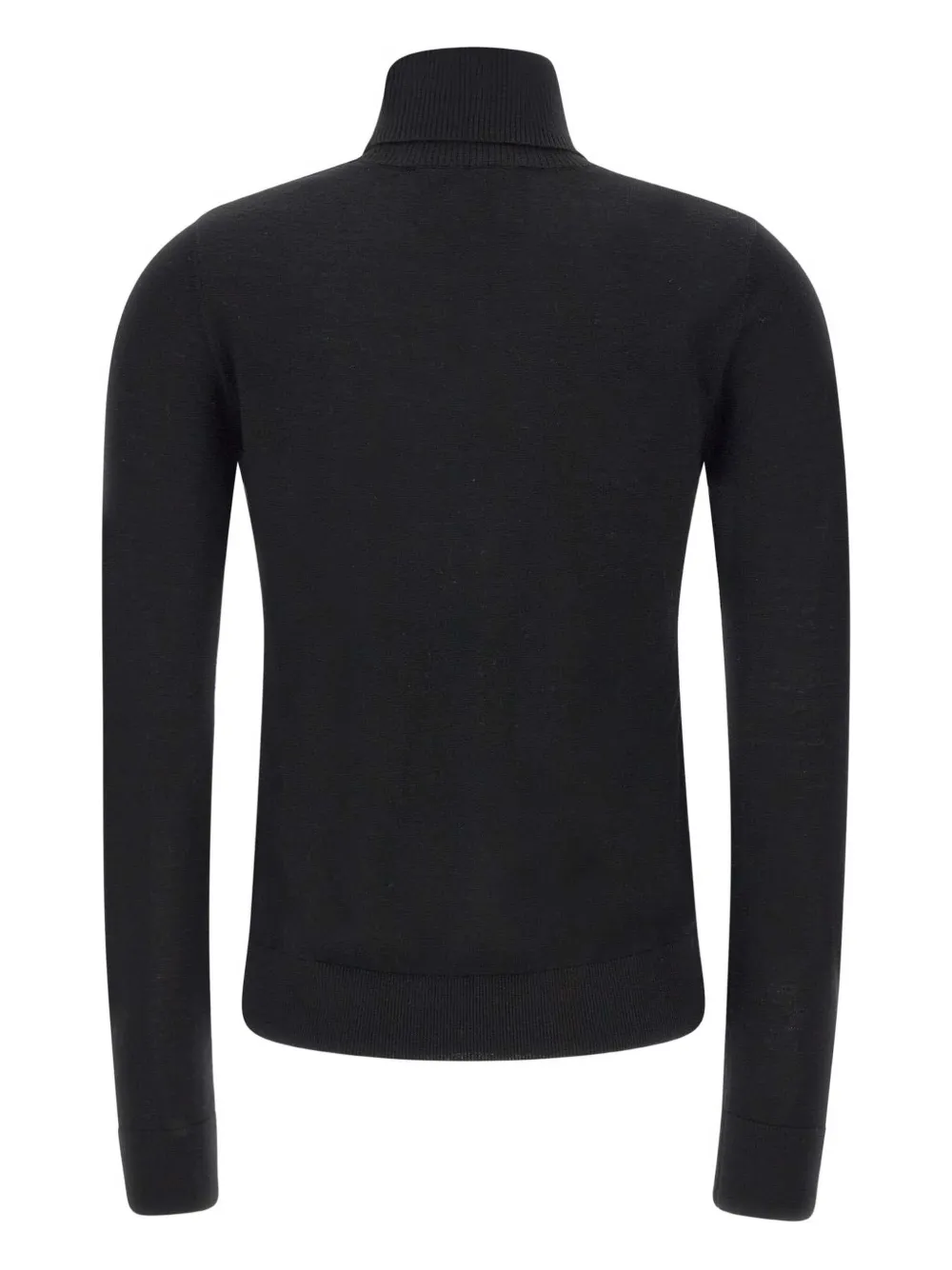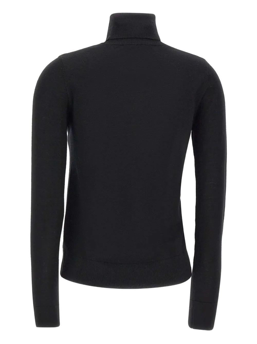 Черные ребристые края, высокий ворот, длинные рукава, вышитый логотип, шерсть