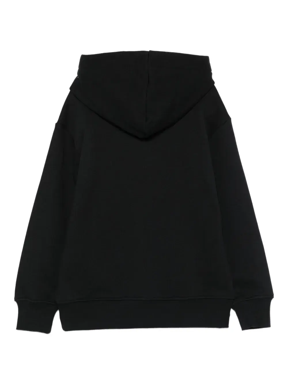 Черный капюшон, карман-кенгуру, длинные рукава, хлопковый материал, графический принт
