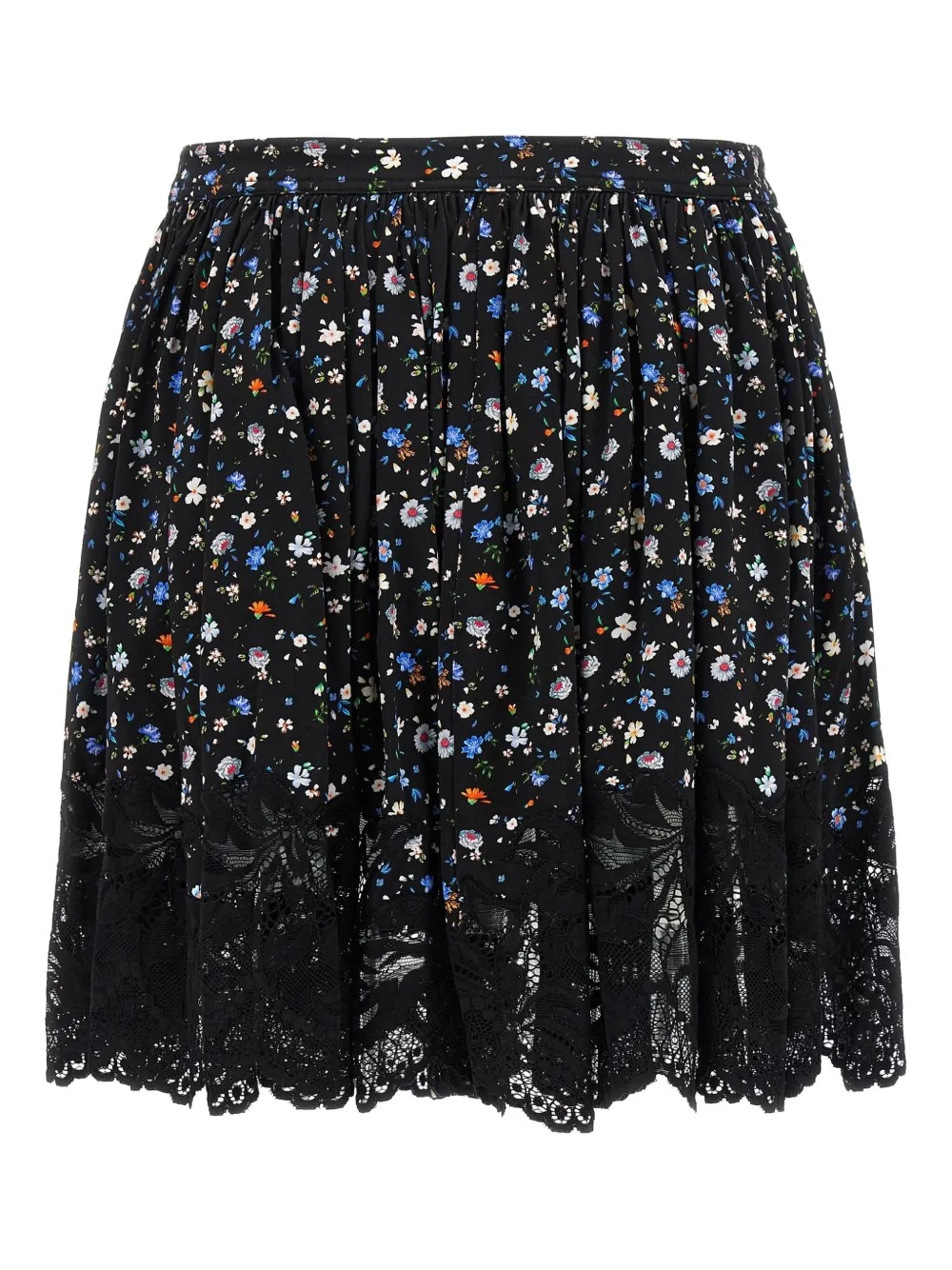 Черный цветочный принт, кружевной подол, застежка на пуговицы спереди, присборенная талия