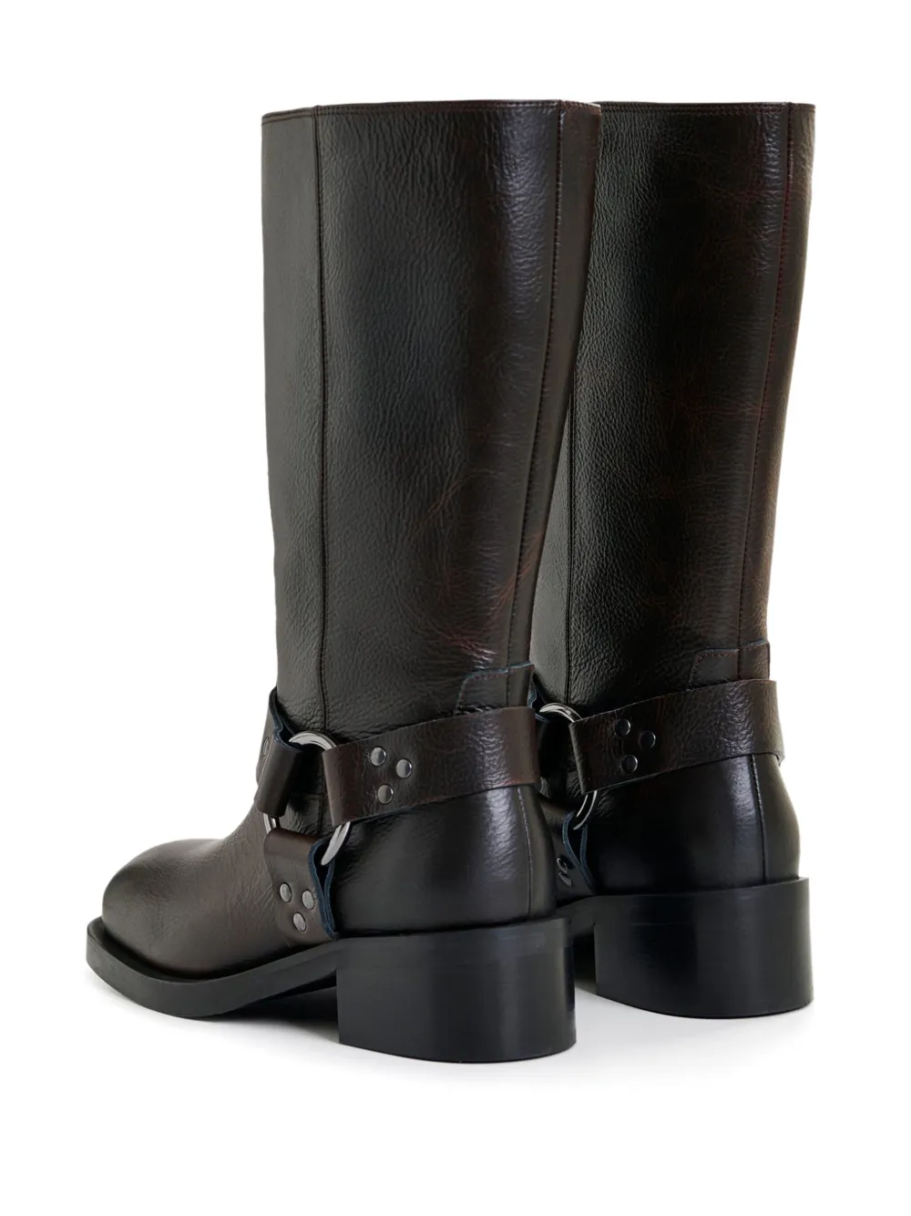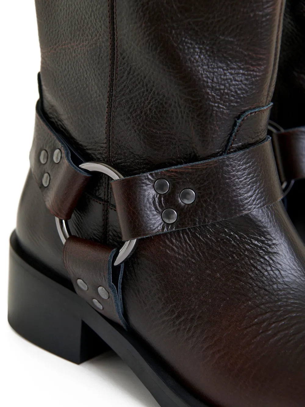Черный кожаный верх с ремешком-пряжкой и кольцом, заклепками, квадратным каблуком