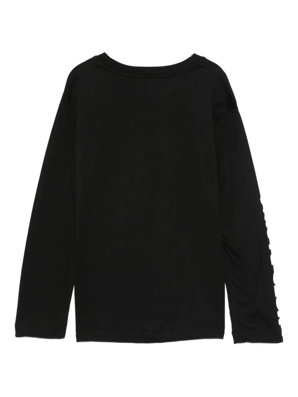 Черные стразы, принт в стиле мотогонок, длинные рукава, круглый вырез горловины