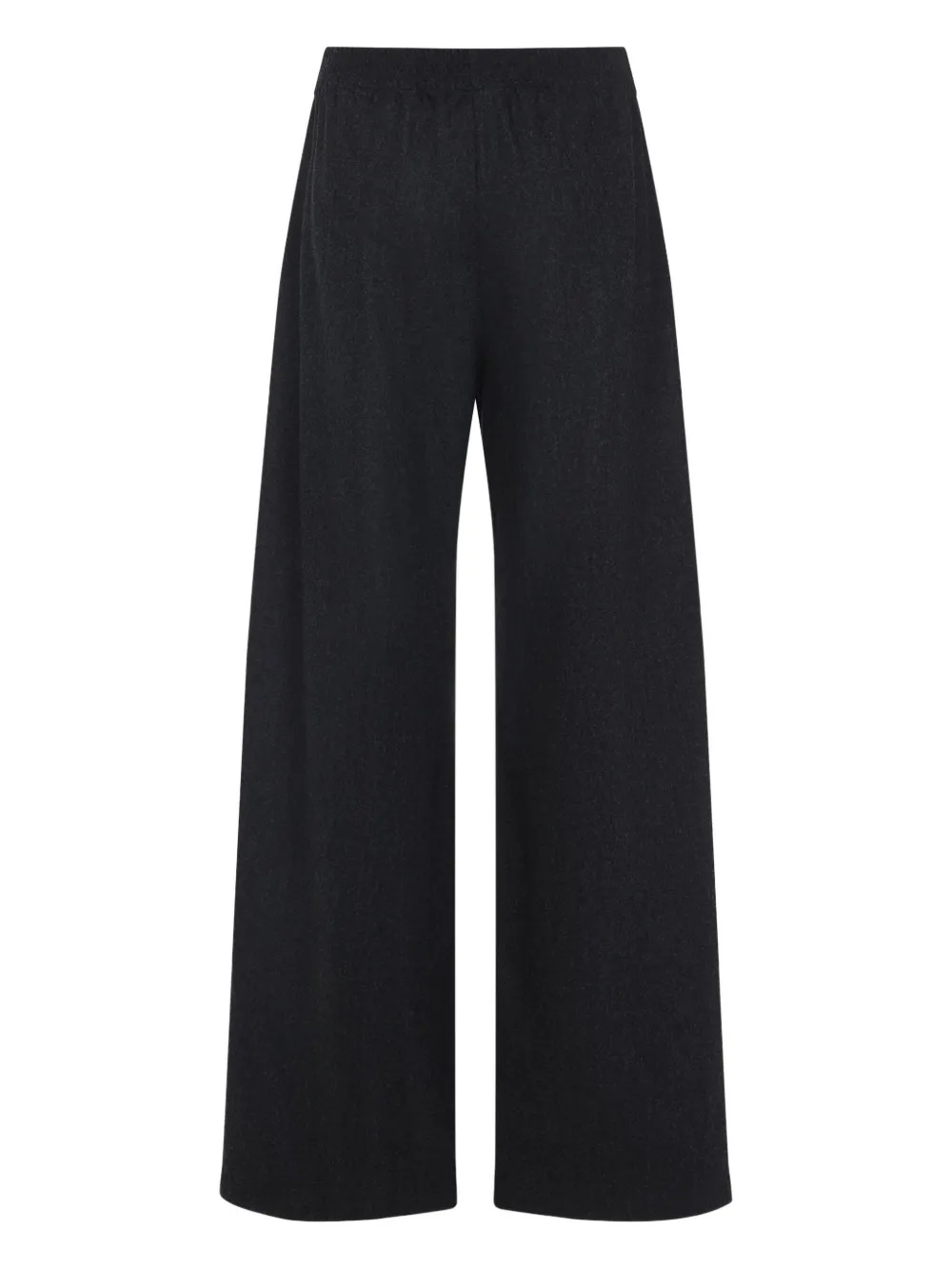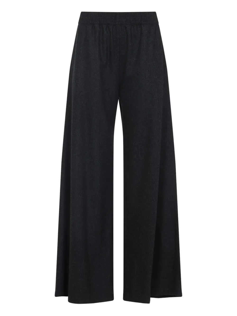 Черная шерстяная модель с широкими штанинами, эластичным поясом, прямым нижним краем, свободным кроем