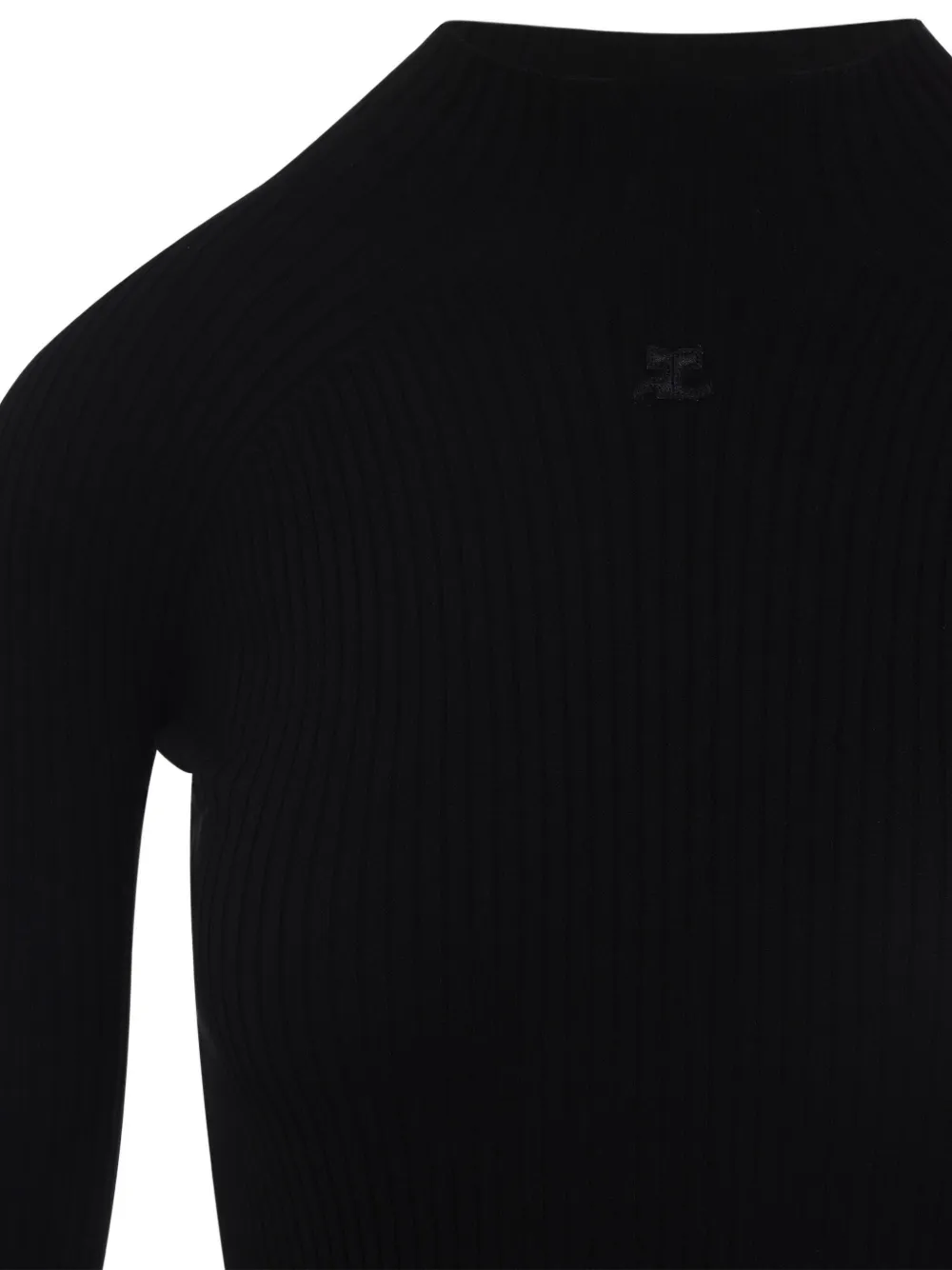 Платье в рубчик с высоким воротом Courrèges, черный