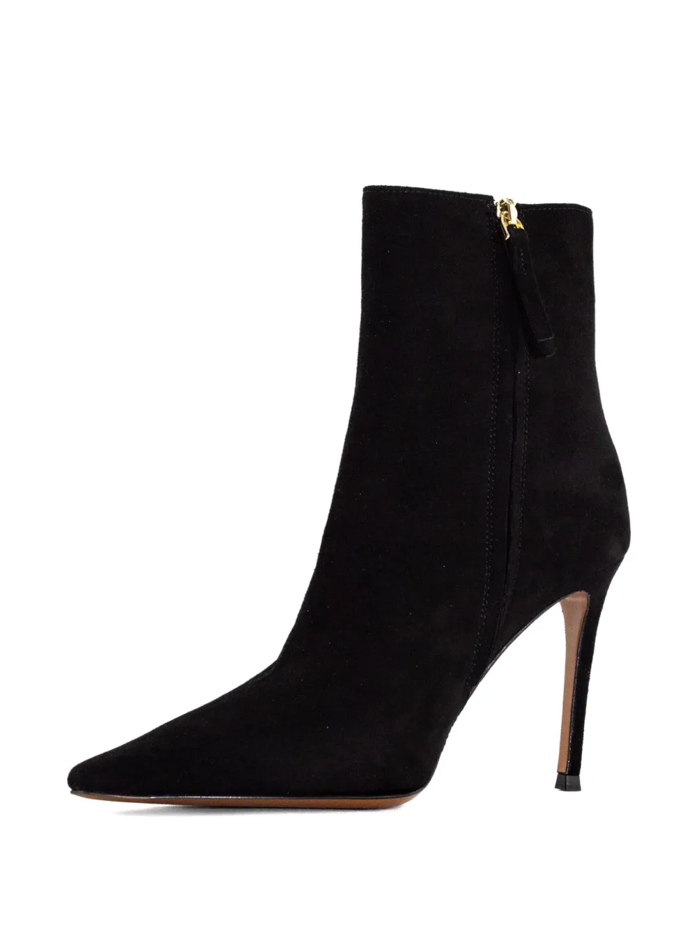 Черная застежка-молния сбоку, острый носок, каблук-шпилька 100 мм