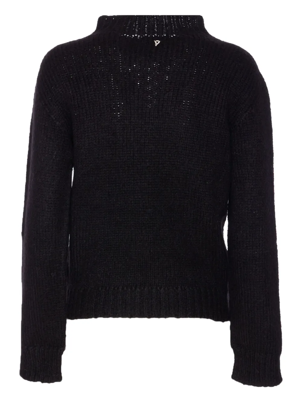 Черный жакет из смеси шерсти альпаки с круглым вырезом и длинными рукавами с ажурным узором