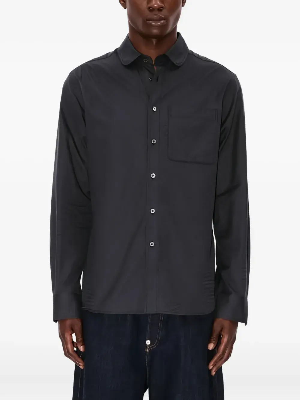 Черные длинные рукава, застежка на пуговицы, накладной карман
