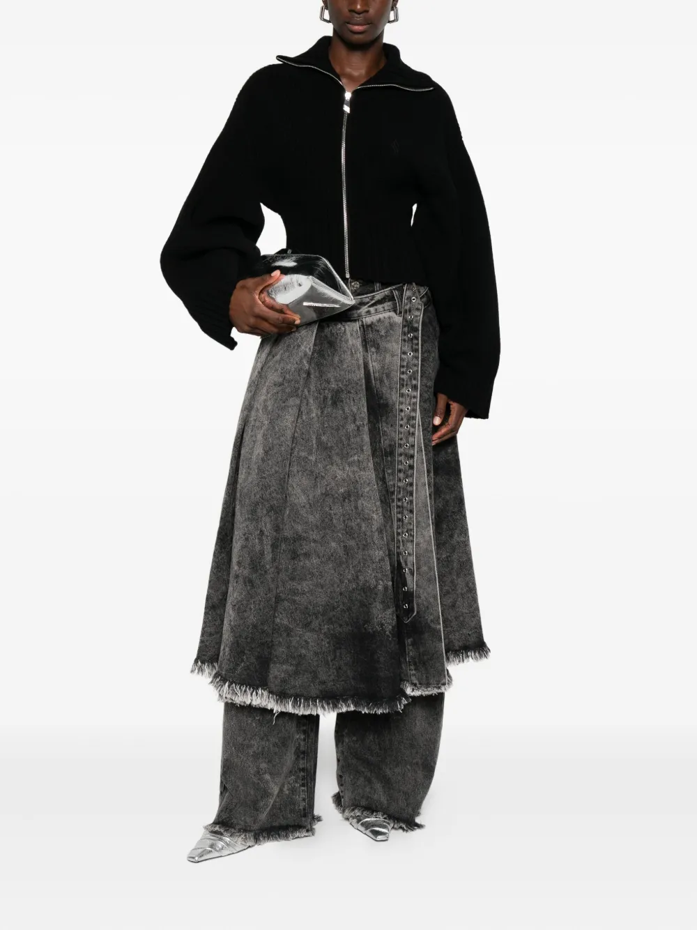 Кардиган на молнии в рубчик The Attico, черный 58 592₽