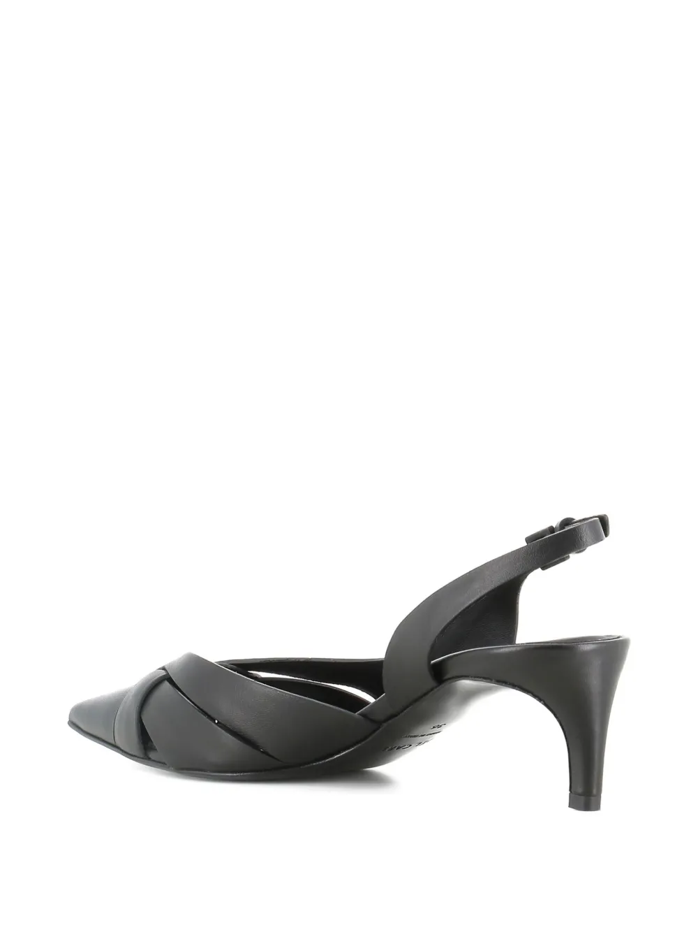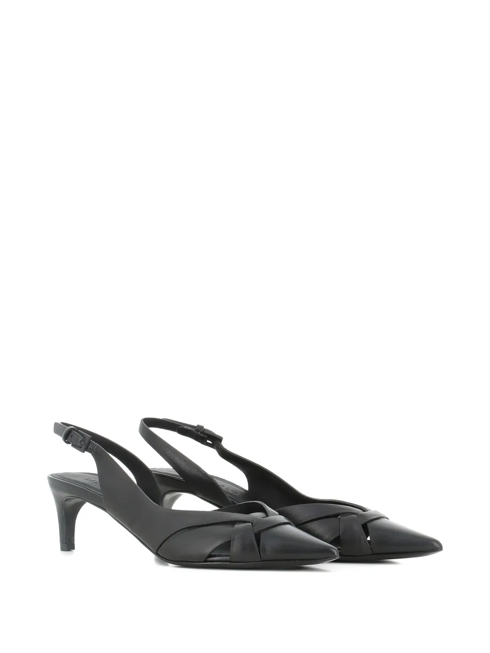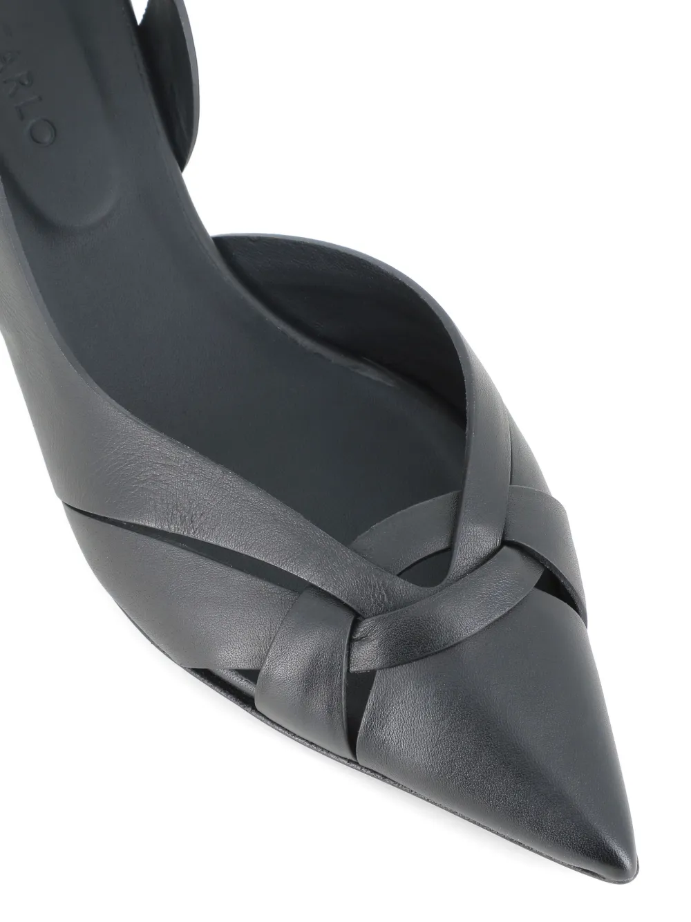 Черные кожаные туфли с острым носком, ремешком на пятке, с узлом на низком каблуке