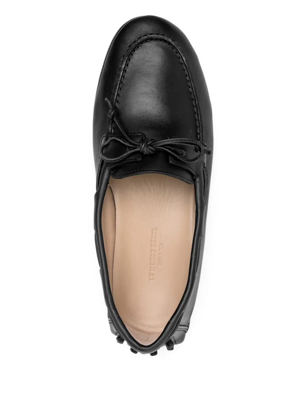 Мокасины из черной телячьей кожи с рифленой подошвой и бантом на носке, без застежек