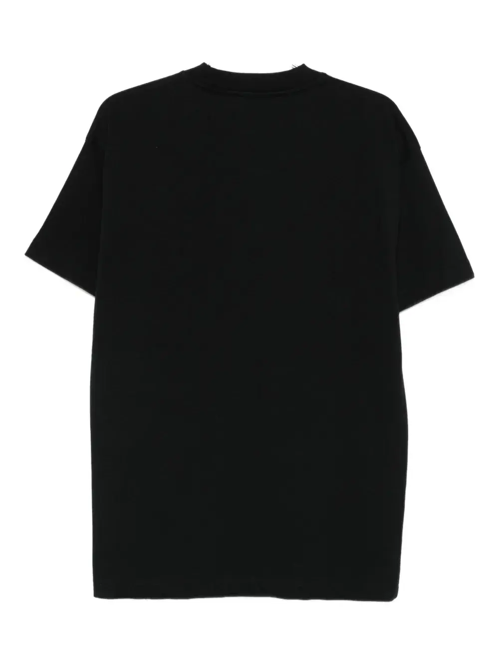 Черный с короткими рукавами и круглым вырезом, хлопковый с графическим принтом