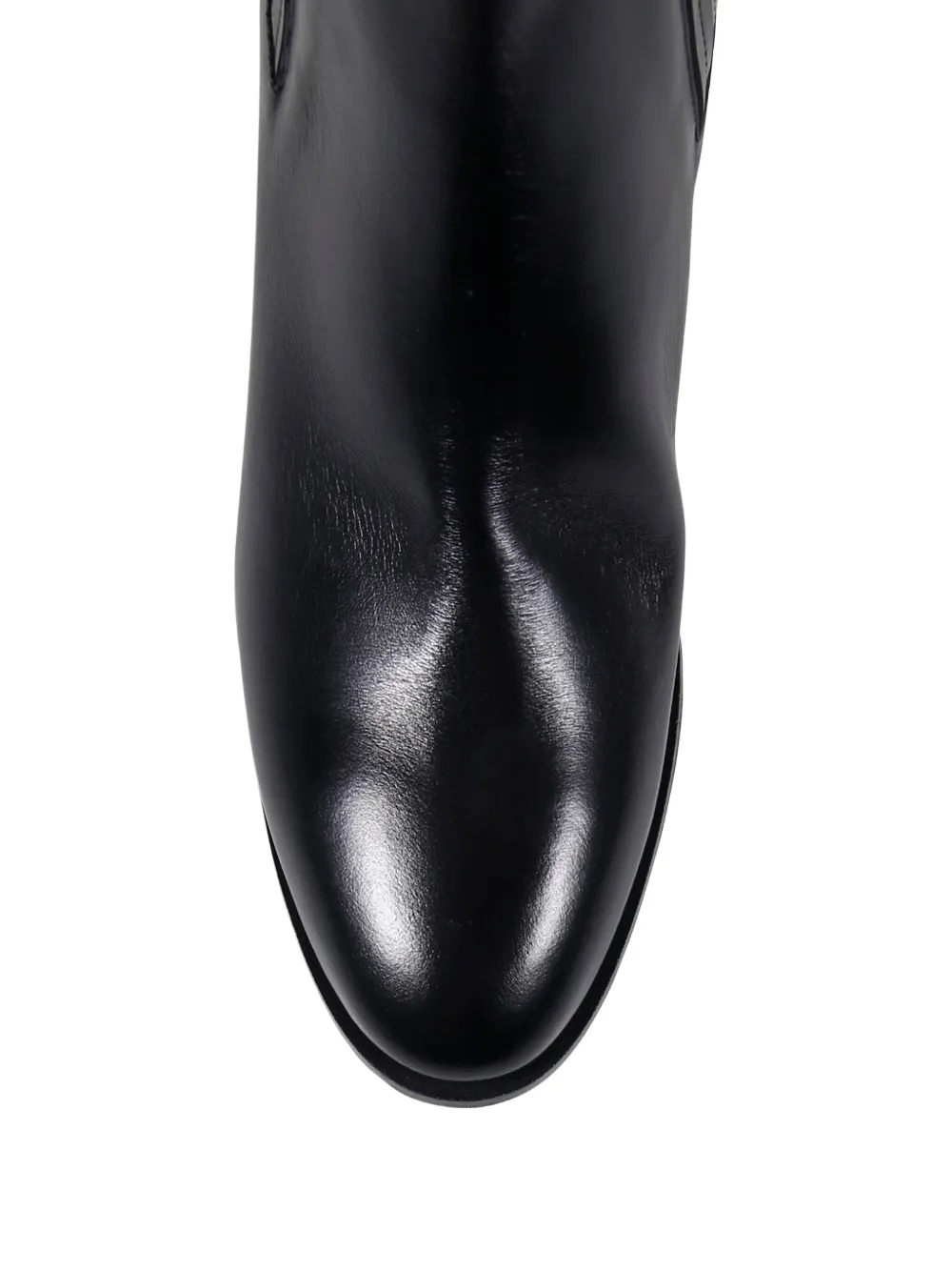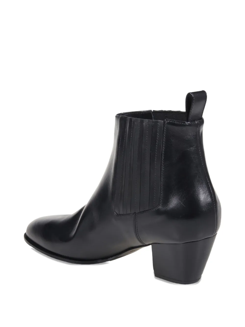 Черные кожаные туфли с блочным каблуком, эластичными боковыми вставками, острым носком, высотой до щиколотки