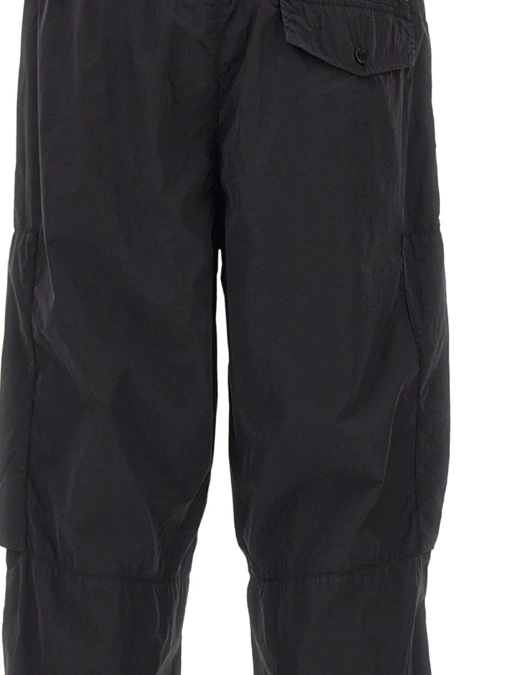 Черная эластичная резинка на талии, застежка на молнию и пуговицы с логотипом, прорезные карманы, карманы на штанинах на пуговицах. Компания CP Company рекомендует снимать все съемные аксессуары перед стиркой.