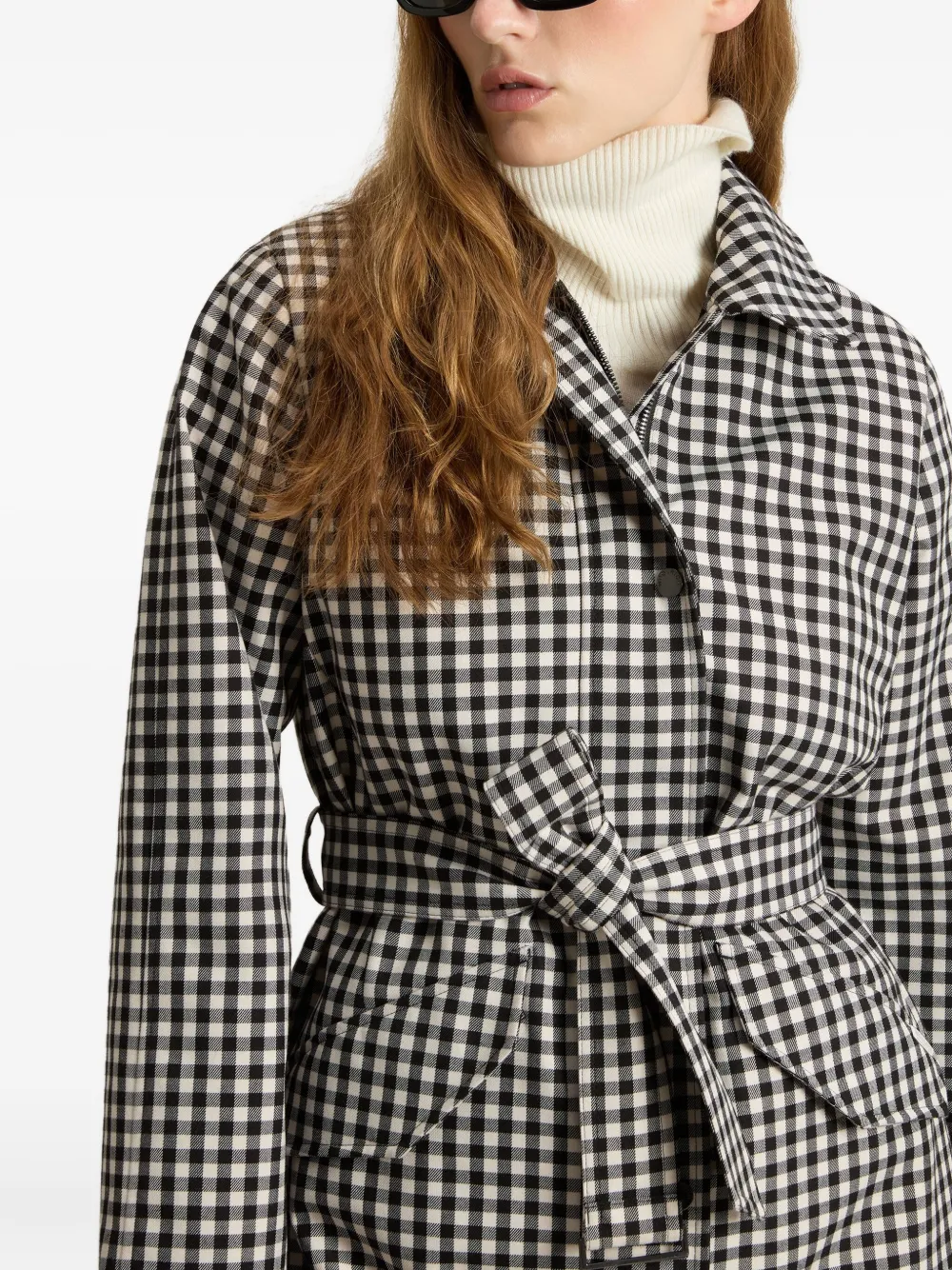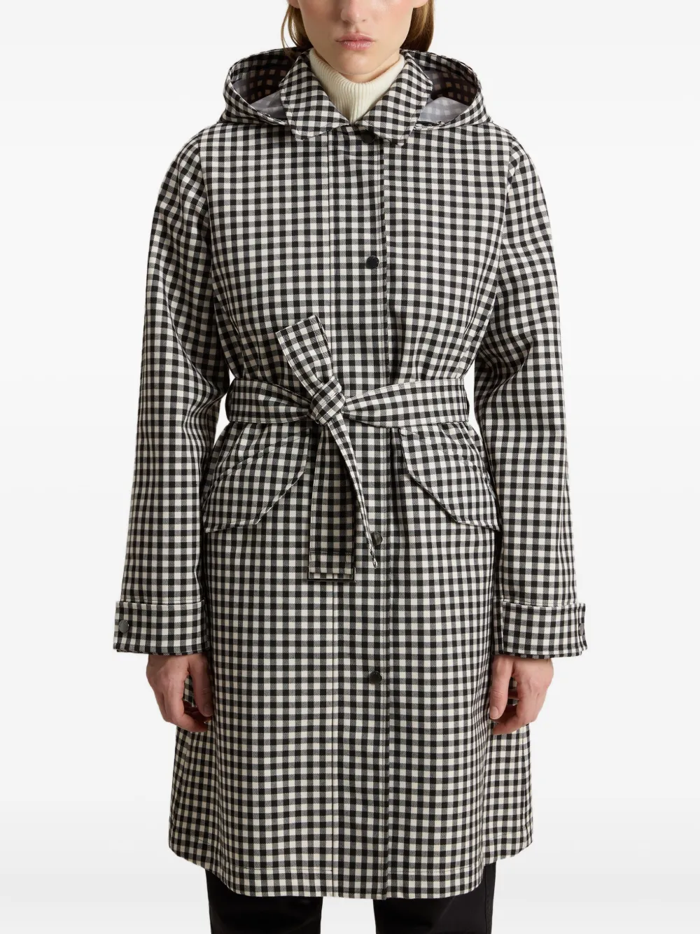 Непромокаемый тренч в клетку гингем WOOLRICH, черный