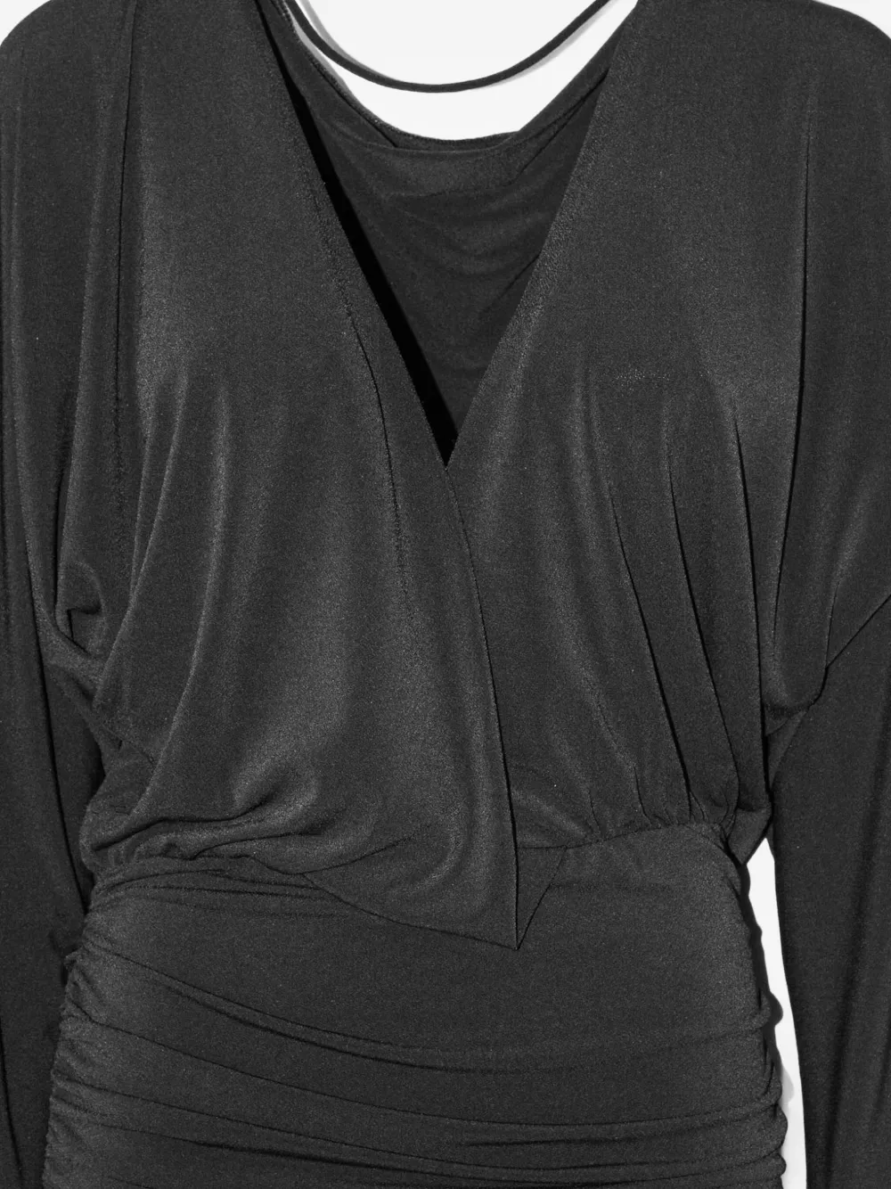 Платье мини с V-образным вырезом и драпировкой THE ANDAMANE, черный