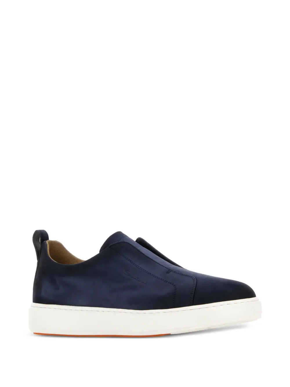 Темно-синяя замша, эластичные боковые вставки, плоская резиновая подошва, тональная строчка