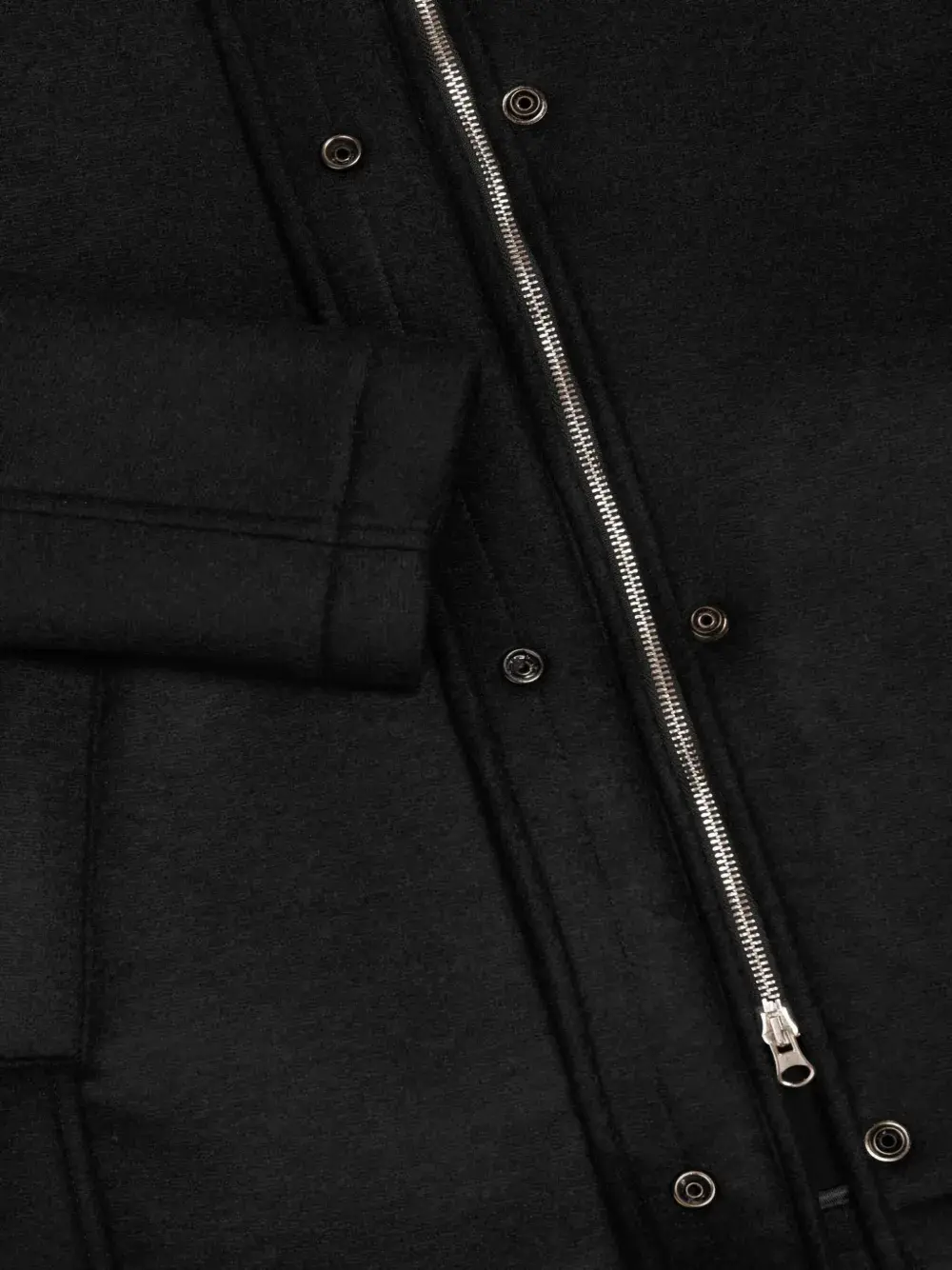 Черный капюшон, потайная застежка, длинные рукава