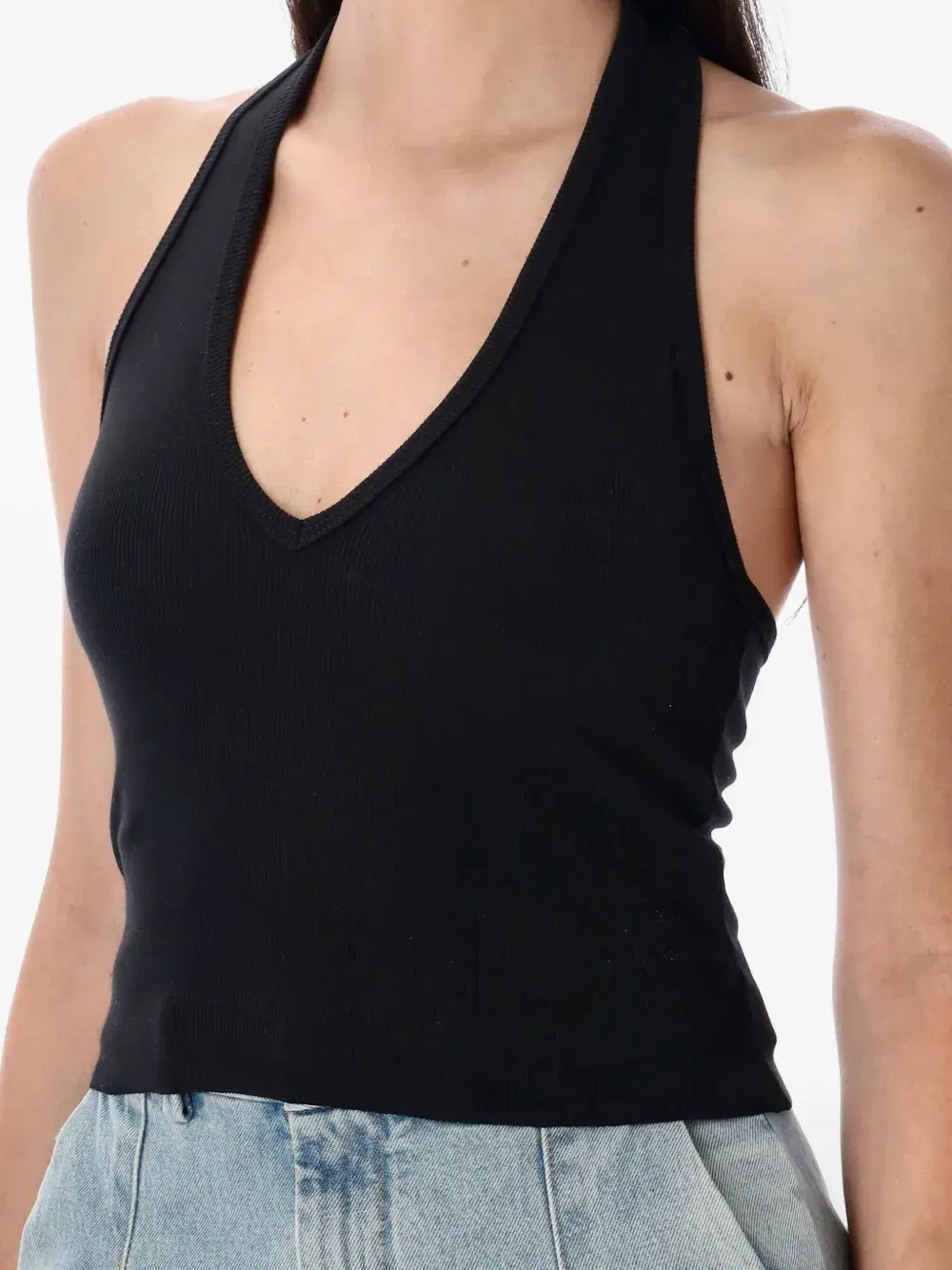Топ с халтер-воротом в рубчик ETERNE, черный