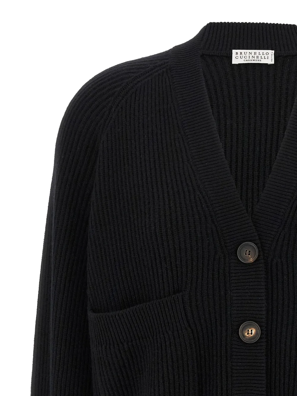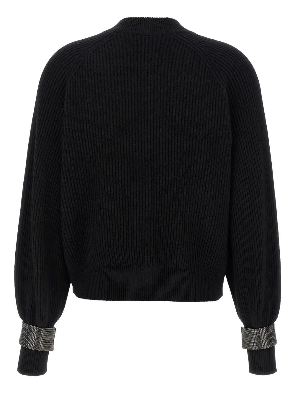 Кардиган в рубчик с манжетами-драгоценностями Brunello Cucinelli, черный