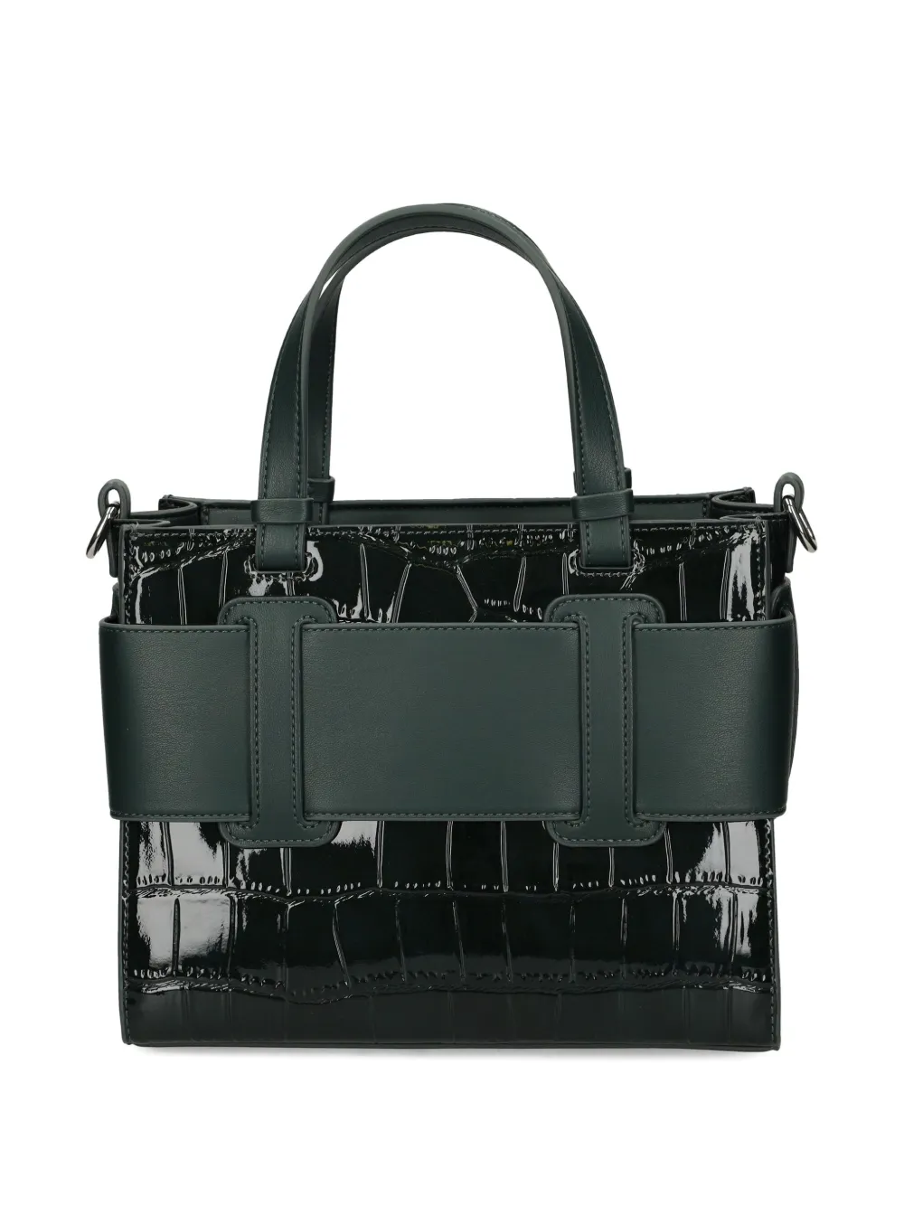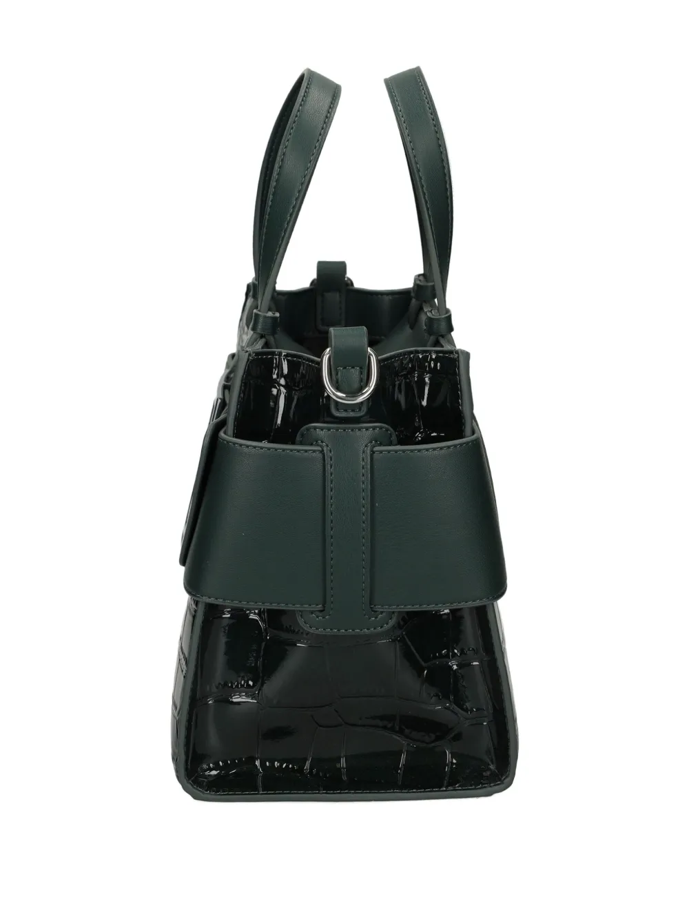 Зеленая пряжка с вышивкой под крокодила, верхние ручки, съемный ремешок