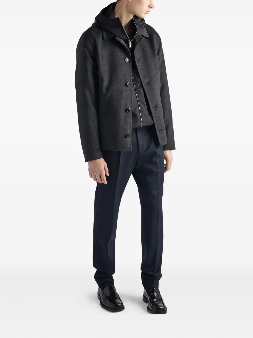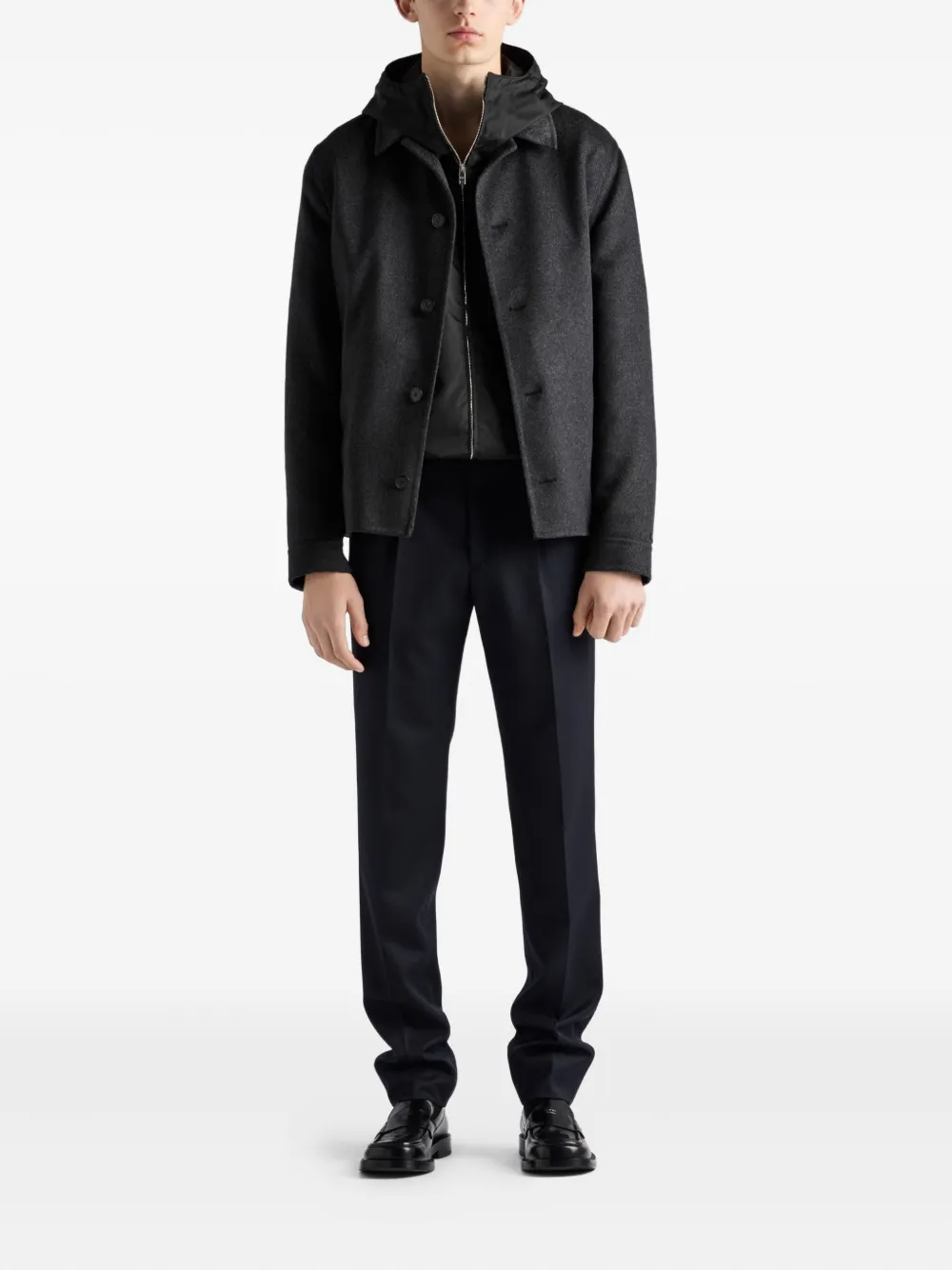 Куртка с капюшоном и застежкой-молнией спереди Prada, черный