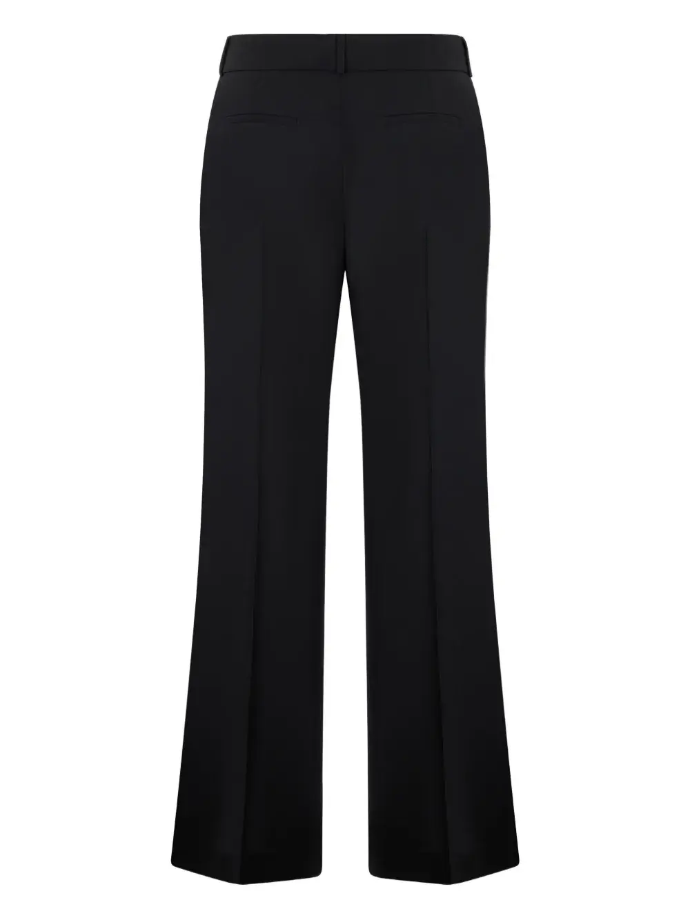 Черный расклешенный подол, задние прорезные карманы, пуговицы, шлевки для ремня