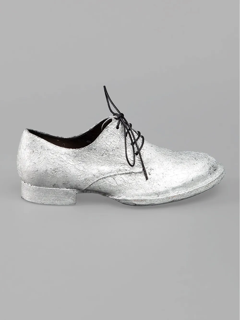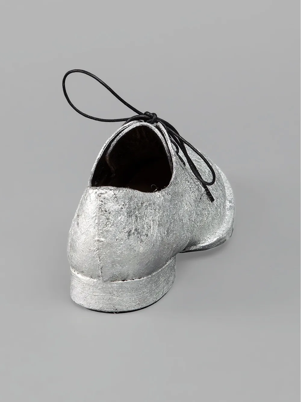 Серебристые замшевые туфли на шнуровке от Barny Nakhle. Закругленный носок, массивный низкий каблук, шнуровка спереди.