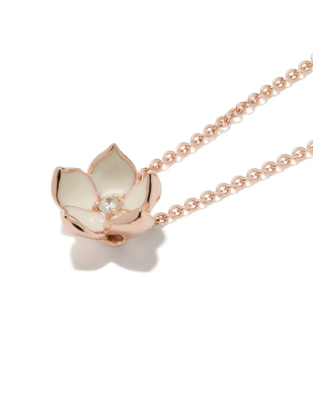 Колье Cherry Blossom с бриллиантами от Shaun Leane. Бриллиант круглой формы, деталь из эмали, тонкая цепочка и застежка-лобстер.