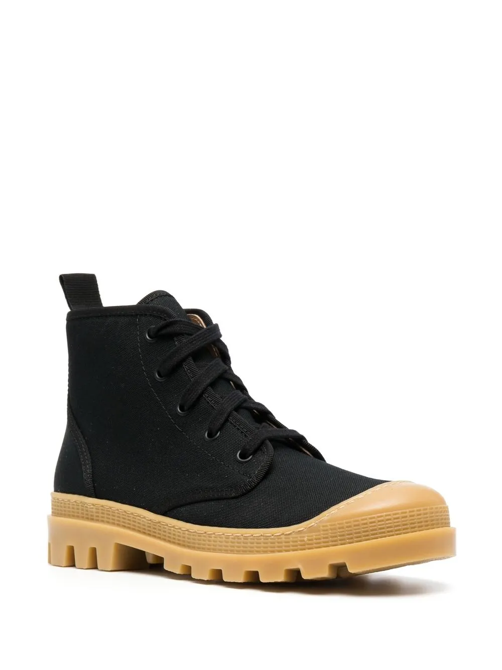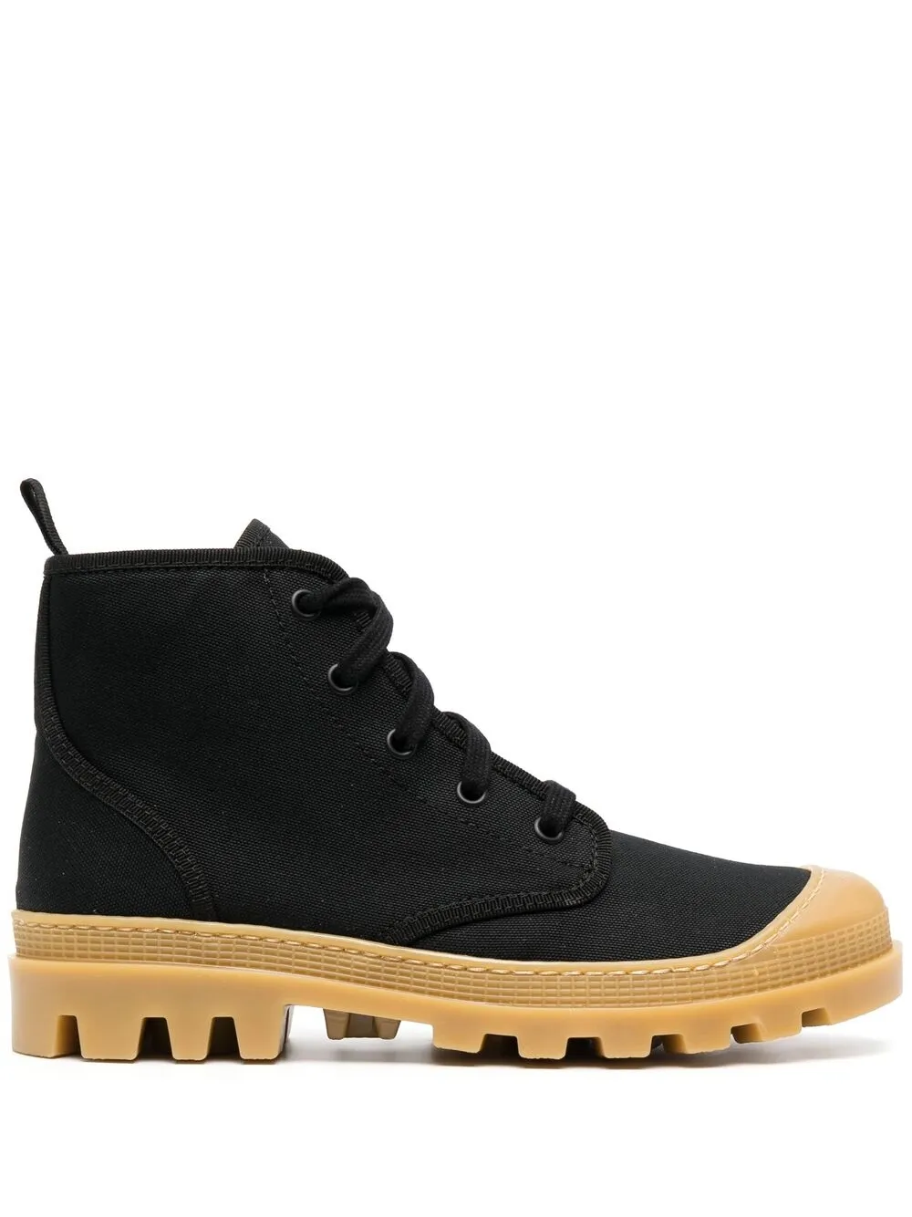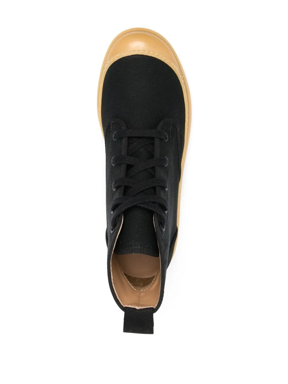 Кожаная отделка, закругленный носок, шнуровка спереди, петля для подтягивания сзади и ребристая резиновая подошва.
