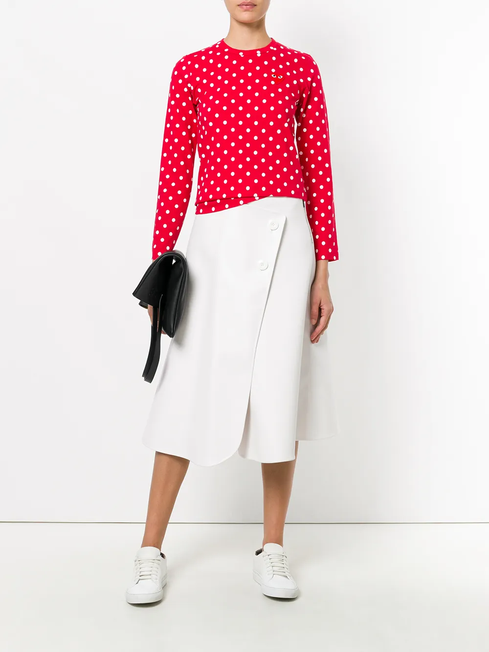 The trademark design of Comme Des Garçon Play’s playful almond-eyed red heart print is camouflaged by the white polka dot design on this red T-shirt, but look closer and see the unmistakable peepers looking out at you. This cotton long sleeve top from Comme Des Garçons Play also features a crew neck and a straight hem.