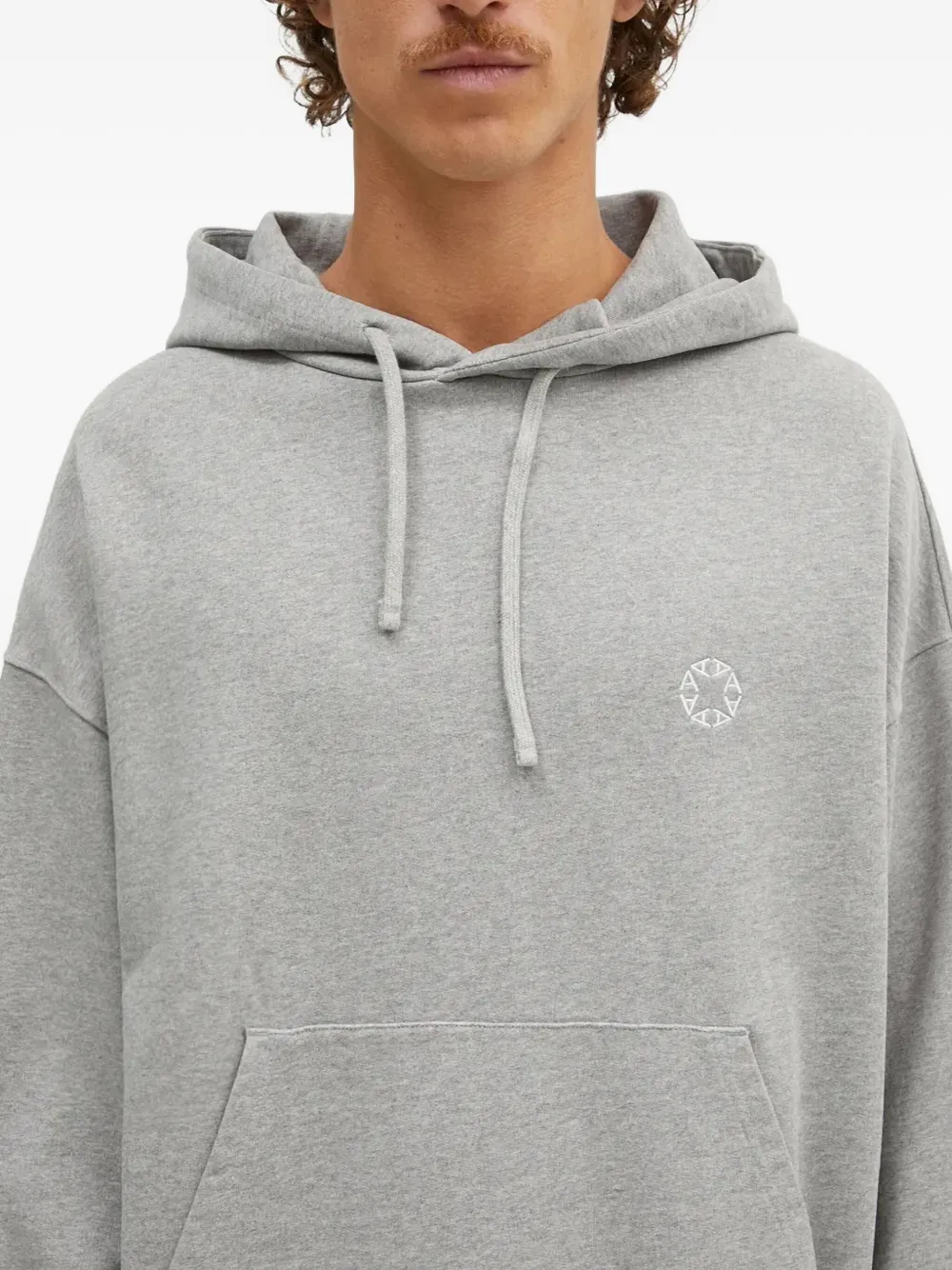 Серый капюшон на шнурке, карман-кенгуру, длинные рукава, вышитый логотип