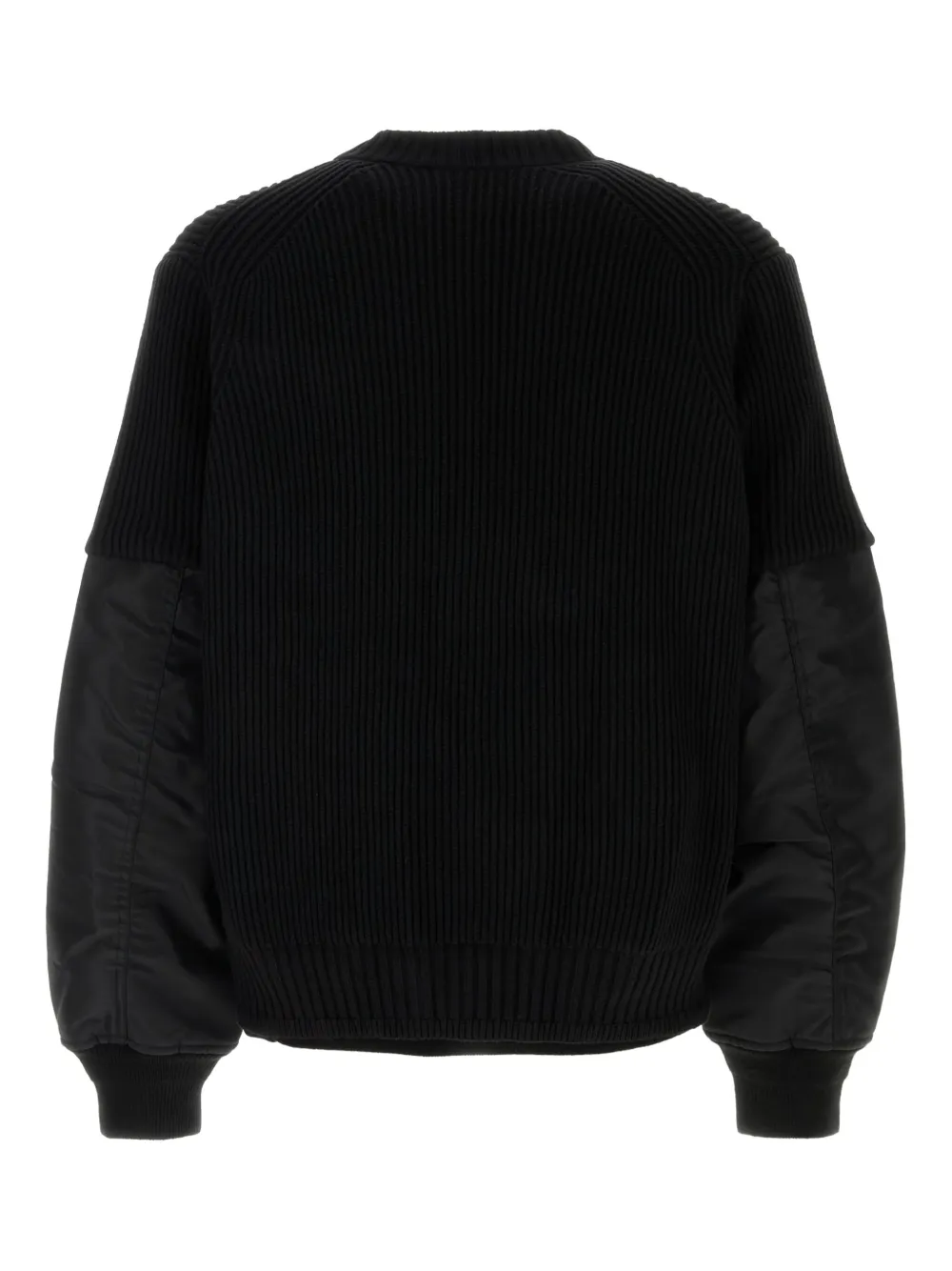 Черный ребристая трикотажная ткань контрастного кроя, рукава, нашивки, круглый вырез, свободный крой
