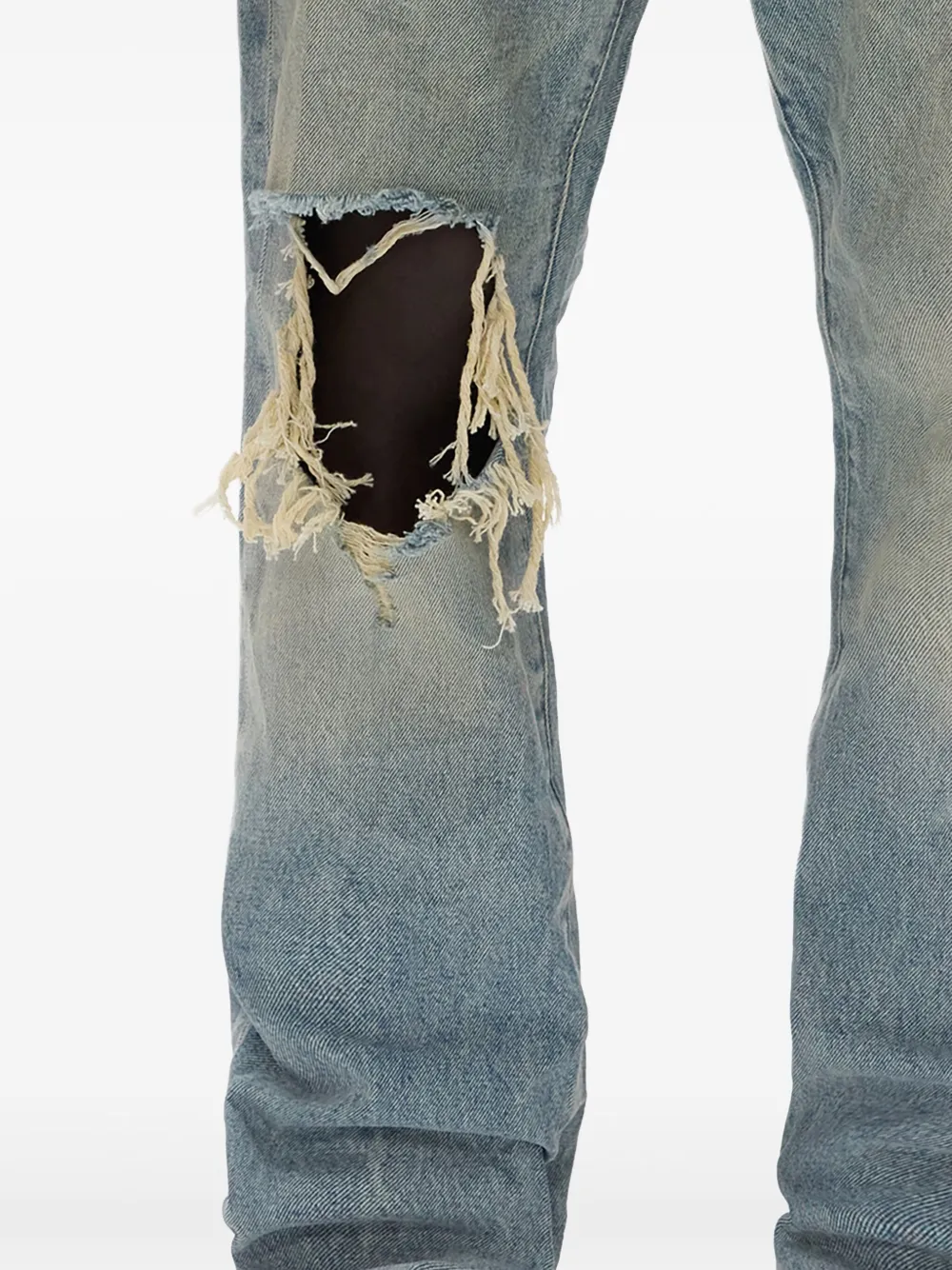 Светло-индиговые потертые колени, потертые края, выцветшая стирка